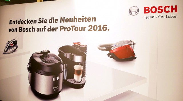 Ansonsten stand der entspannte Dialog mit den Handelspartnern abseits üblicher Messehektik auch bei der diesjährigen ProTour im Vordergrund. „In entspannter Atmosphäre stehen unseren Partnern die passenden Experten Rede und Antwort – eine ideale Plattform“, sagte Uwe Meergans, BSH, Consumer Products, Leitung Vertriebsregion Central, Eastern Europe. Möglichkeiten, den neuen Bosch Chefkoch AutoCook sowie die Experten der CP-Sparte zu treffen gibt es noch morgen in Hannover( Eilenriedhalle), danach in Leipzig (Globana Trade Center am 10. März), Nürnberg (Ofenwerk am 14. März) und München (Postpalast am 17. März).