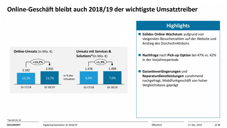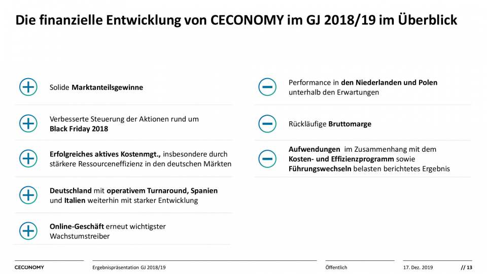 Einzelne Charts Ergebnispräsentation Ceconomy GJ 2018/19 ^