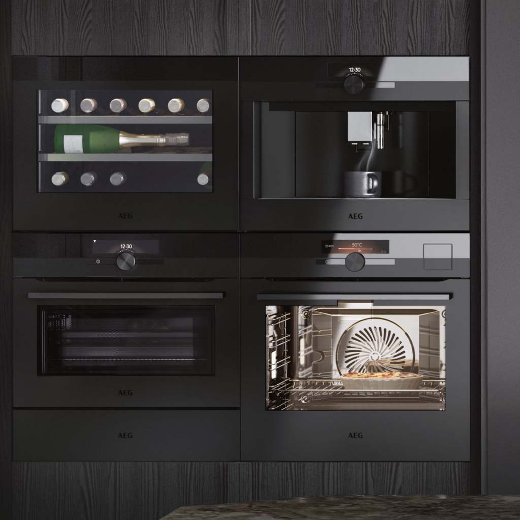Die Matt Black Range umfasst zwei Backöfen und zwei Kompaktbacköfen, die je nach Modell mit smarten Funktionen wie „SenseCook“, „CombiQuick“ oder „SteamPro“ ausgestattet sind, sowie einen Einbau-Weinkühlschrank, einen Kaffeevollautomaten, eine Wärmeschublade und eine Vakuumierschublade. Die einheitliche Materialität aller Geräte sorgt für eine ungemeinde Flexibilität in der Küchengestaltung, setzt zudem ein überzeugendes Statement in Sachen Geschmack.