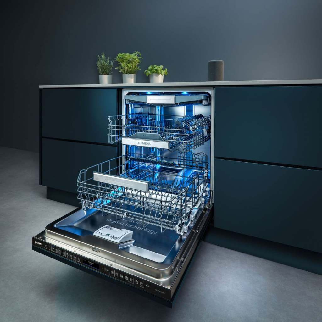 Die Spülmaschine ist voll. Also Tab rein und dann drückt man die Taste, die man immer nimmt. Aber ist das gewählte Programm auch wirklich das optimale? Diese Frage stellt sich bei der smarten Spülmaschine nicht. Denn die wählt je nach Geschirrmenge und Verschmutzungsgrad das passende Programm. Das Ganze funktioniert über einen Beladungssensor. Einige Maschinen, wie die von Siemens, regeln mittels eines Aquasensors zudem den Wasserverbrauch. Der ist dann ganz besonders niedrig. Auch wer ganz schnell trockenes Geschirr braucht, der kann das ebenfalls einstellen. Nach Ende des Spülprogramms steht dann sofort ein trockener Teller zur Verfügung. Übrigens, man kann natürlich die Maschine auch dann starten, wenn der Strom am günstigsten ist.