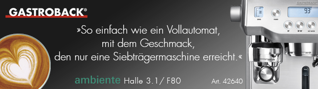 Gastroback stellt mit dem „Design Espresso Advanced Pro G s“ auf der Ambiente seinen neuesten Siebträger vor, eine Neuauflage des bisher erfolgreichsten Siebträgers aus Hollenstedt. Für eine gelungene Fortsetzung der Erfolgsstory bringt er wohl alle Voraussetzungen mit: Top-Ausstattung und hochwertige Materialien in Verbindung mit ...