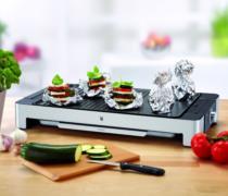 Acht Tisch-Grills sind bei der Zeitschrift Haus & Garten Test für die Ausgabe 1/2016 zum Test angetreten. Als Testsieger mit der Note „gut“ (1,7) belegte der Lono Tischgrill flach & gerippt von WMF klar den 1. Platz. Als besonders leistungsfähig hat sich im Test die Temperaturregelung präsentiert. Dazu die Tester: „das Themostat ist so ...