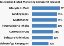 Sieben Themen sind nach Erkenntnissen der Studie Email-Trends (Email-Trends.de), herausgegeben von dem Beratungsunternehmen Absolit, Waghäusel, besonders relevant. Mit 37 Prozent ganz oben steht das Thema Lifecycle-Kampagnen. Je nachdem, wo Kunden gerade im Kundenlebenszyklus stehen, erhalten Sie automatisiert individuell passende Botschaften. In diesen Zusammenhang passt auch das Thema Multichannel.