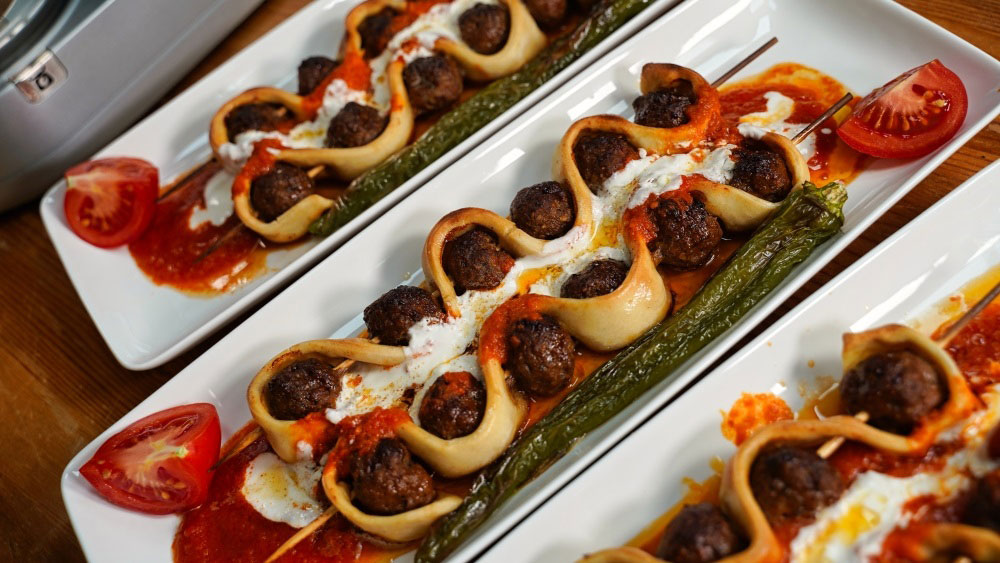 Schwierig, sich hier für ein Gericht zu entscheiden, aber da wäre zum Beispiel „Manti“, kleine mit Hackfleisch gefüllte Teigtaschen in Joghurt mit Knoblauch und mit Paprika-Butter-Soße oben drauf. Alle Arten von Sarma oder Rouladen aus Weinblättern, Kohl, aber auch gefüllte Spitzpaprika und ähnliches. Wok-Nudeln mit Gemüse, alle möglichen Börek-Arten, Pizza und so viel mehr.