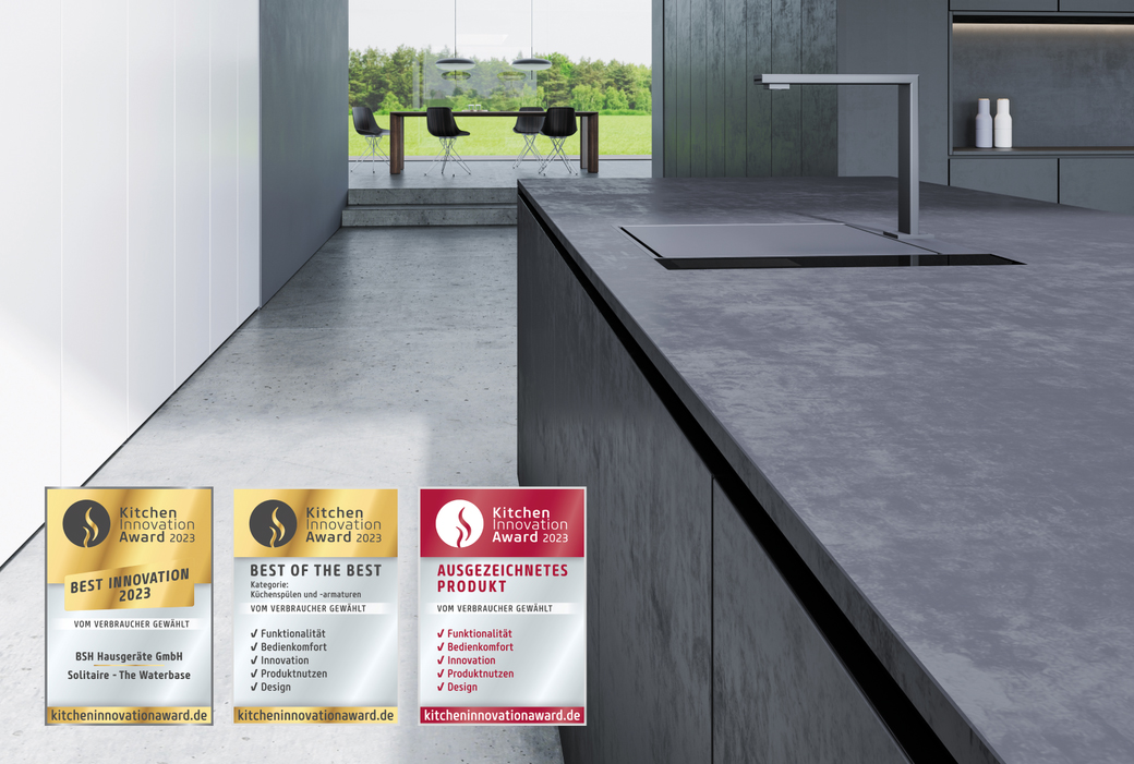 The Waterbase, Weltneuheit von Solitaire, gewinnt beim Kitchen Innovation Award 2023 drei Auszeichnungen.