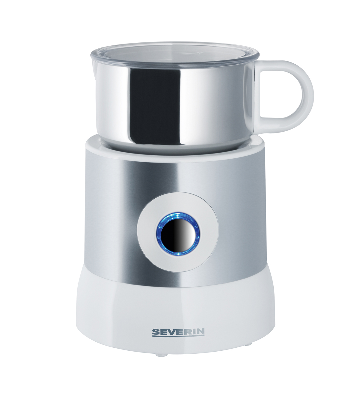 Mit dem neuen automatischen Milchaufschäumer, den SEVERIN erstmals auf der IFA 2010 präsentiert, gestaltet sich die Zubereitung von perfekten Milchhauben im Handumdrehen. Der abnehmbare und spülmaschinenfeste Topf, der sich elegant von der Basisstation abhebt, fasst 500 ml für köstlichen Milchschaum oder heiße Milch für Kakao oder ähnliches. Äußerlich punktet der smarte Helfer durch ein klares Design in Weiß-Edelstahl, im Inneren durch eine durchdachte Antihaft-Beschichtung, die Milchresten keine Chance lässt. Praktisch ist auch das Aufbewahrungskonzept für die Einsätze. Diese können nach der Reinigung platzsparend an die Gehäuserückwand gesteckt werden.