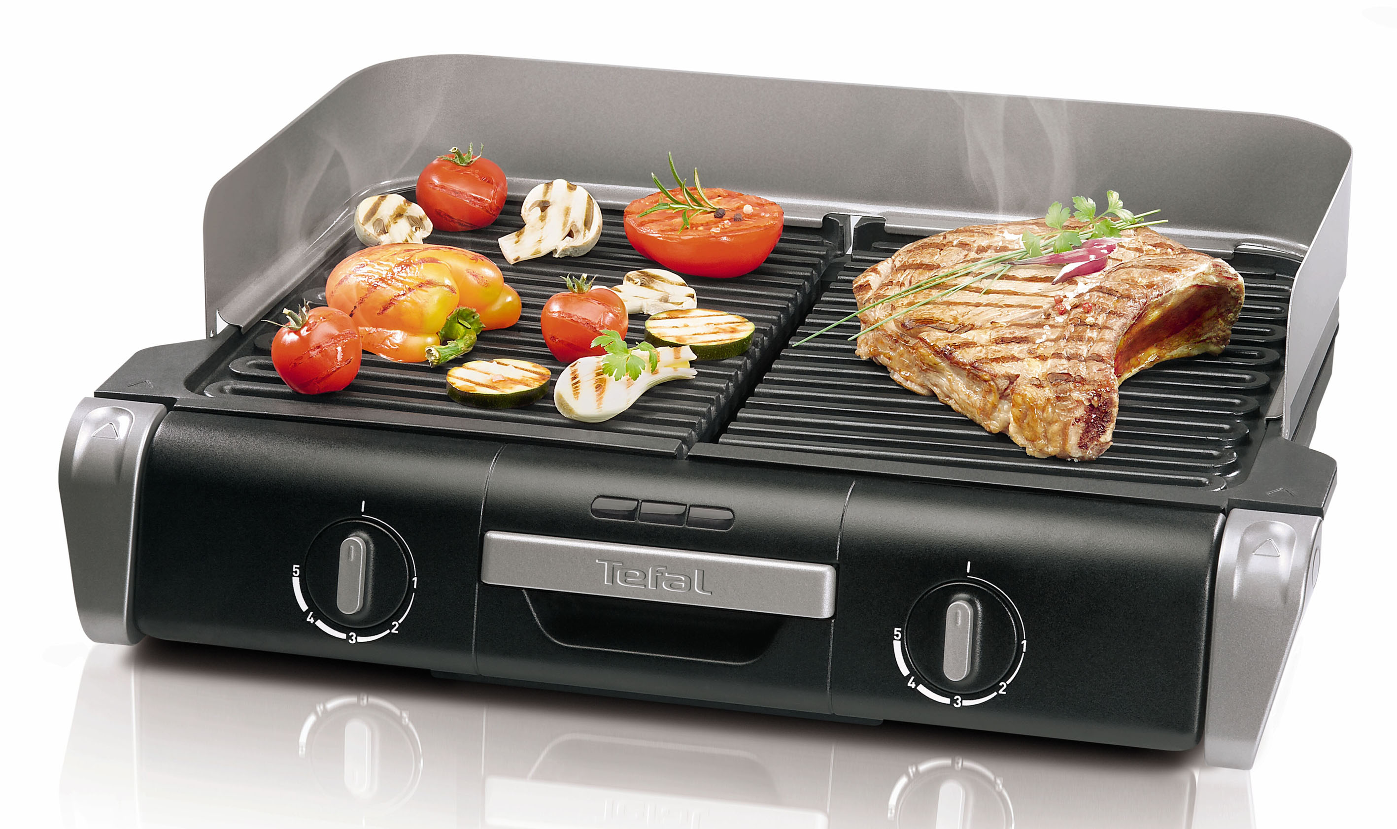 Nach den ersten Sonnenstrahlen ist die lang ersehnte Grillsaison nun wieder eröffnet. Rechtzeitig am Start: der neue Tefal BBQ Family TG 8000, der allen GrillFans noch mehr Komfort und Abwechslung beim Brutzeln bietet. Tefal ist im Bereich elektrisches Grillen für seine praktischen innovativen Produktideen bekannt und auch das jüngste Modell im Sortiment hat wieder etwas Besonderes zu bieten: Mit zwei getrennt regulierbaren Grillflächen ermöglicht der BBQ Family die gleichzeitige Zubereitung von unterschiedlichem Grillgut mit der jeweils optimalen Temperatur. Dank der stufenlosen Steuerung über zwei Thermostate kann auf der einen Seite etwa ein saftiges Steak scharf angebraten und auf der anderen Grillplatte Gemüse als vitaminreiche Beilage warm gehalten werden. Die Grillsäfte vermischen sich dabei nicht. Für ein ansprechendes, intensives Grillmuster sorgen die extra tiefen Rillen der massiven Grillplatte aus Alu-Druckguss. Fett und Grillsäfte laufen direkt in einen Auffangbehälter, was die Entwicklung von unangenehmem Rauch zuverlässig reduziert. Auch die anschließende Reinigung des BBQ Family fällt leicht. Dank des patentierten Entriegelungssystems können Grillplatten und Spritzschutz besonders einfach abgenommen und in der Spülmaschine gereinigt werden.