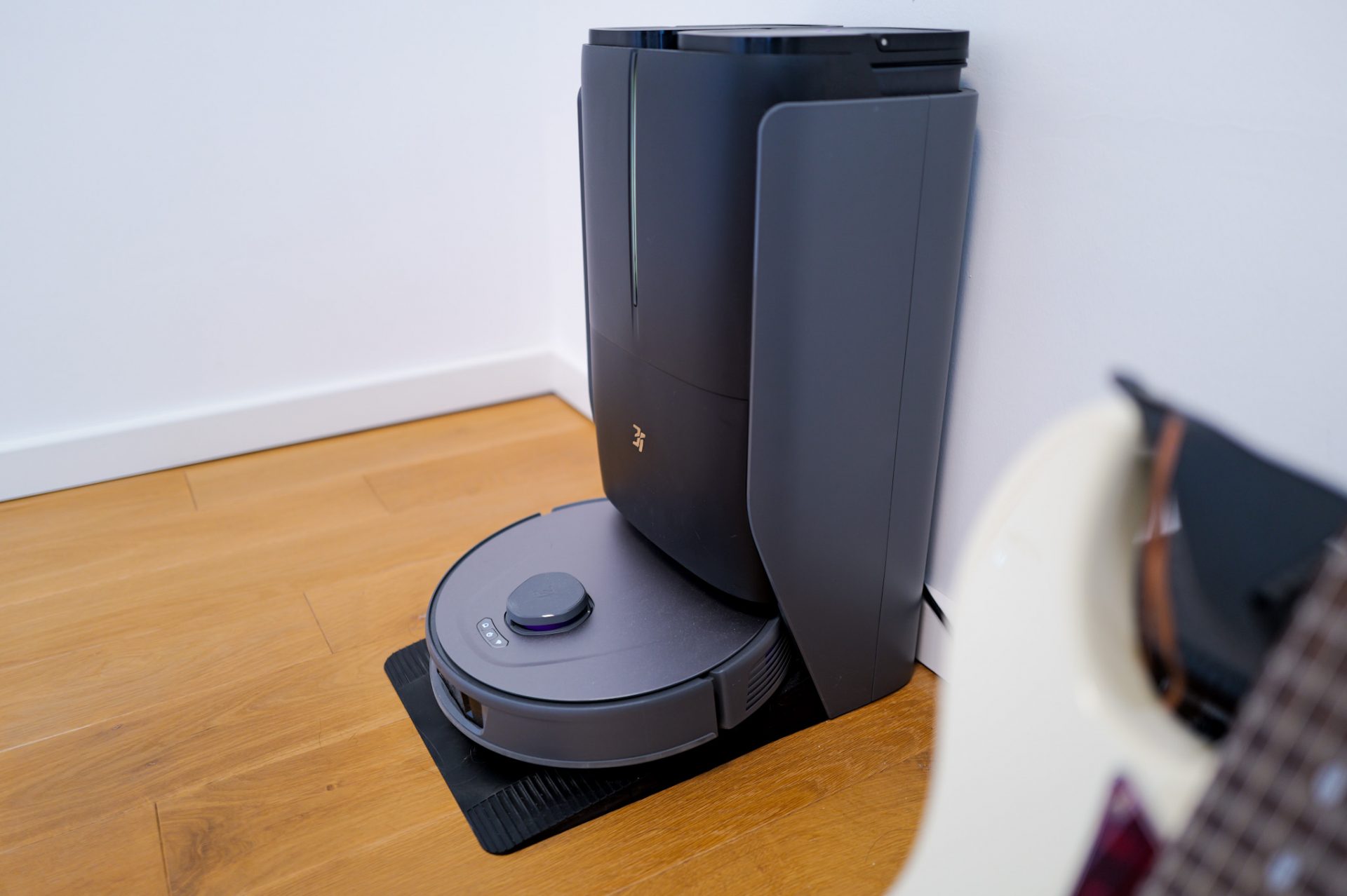 Die All-in-One-Station ist großzügig dimensioniert. Sie verwaltet Frischwasser- und Schmutzwassertank (je ca. 4 Liter), entleert den Staubbehälter der Station (ca. 3 Liter) und nutzt Heißwasser sowie Warmluft zur Reinigung und Trocknung der Mopps. Anders ausgedrückt: Der Wartungsaufwand ist minimal. Alle paar Tage bis Wochen (je nach Fläche) Frischwasser und Reinigungsmittel auffüllen, Schmutzwasser leeren, Staubbeutel wechseln – mehr ist meist nicht nötig.
