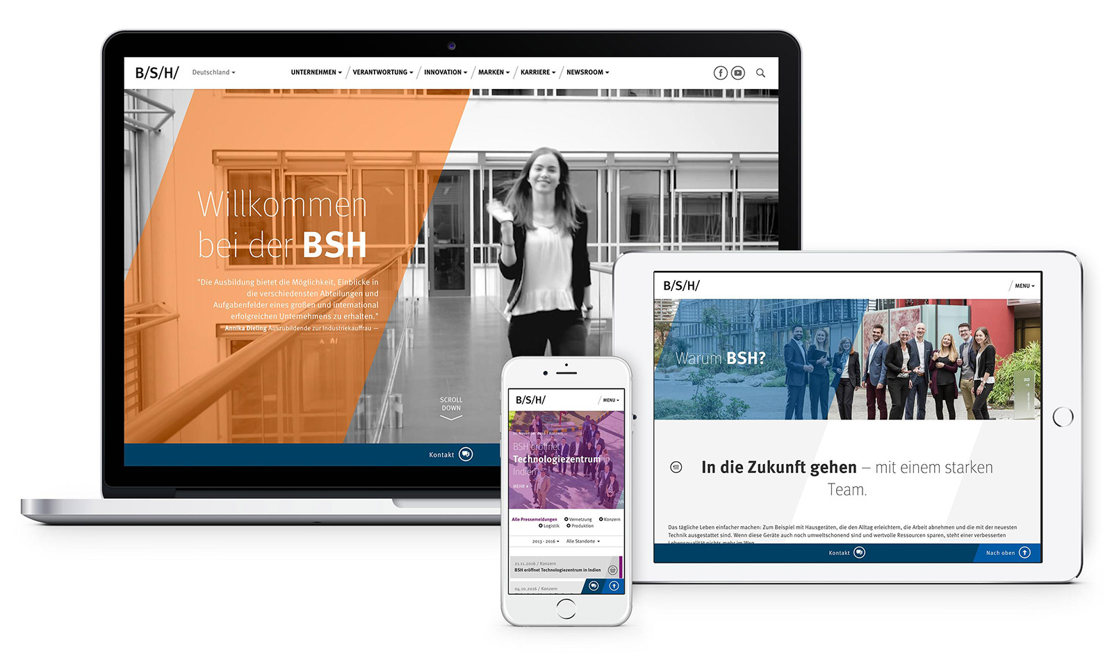 Die BSH Hausgeräte GmbH feiert in diesem Jahr ihr 50-jähriges Bestehen. Der Start ins Jubiläumsjahr wird von einem Relaunch der Unternehmenswebseite flankiert. Herzstück der neuen Webseite ist ihr zielgruppenspezifischer Aufbau: Mit der Speaking Navigation, einer Navigation mit kurzer Erläuterung zu den Inhalten des jeweiligen Links, können sich Besucher auf der Webseite mühelos und schnell orientieren. Ein neues Farbkonzept und der umfassende Einsatz von Videos und Animationen sorgen für eine moderne und dynamische Optik. Der neue Internetauftritt ist für alle Endgeräte optimiert, vom Smartphone und Tablet bis zum Desktop.