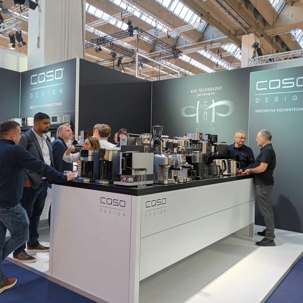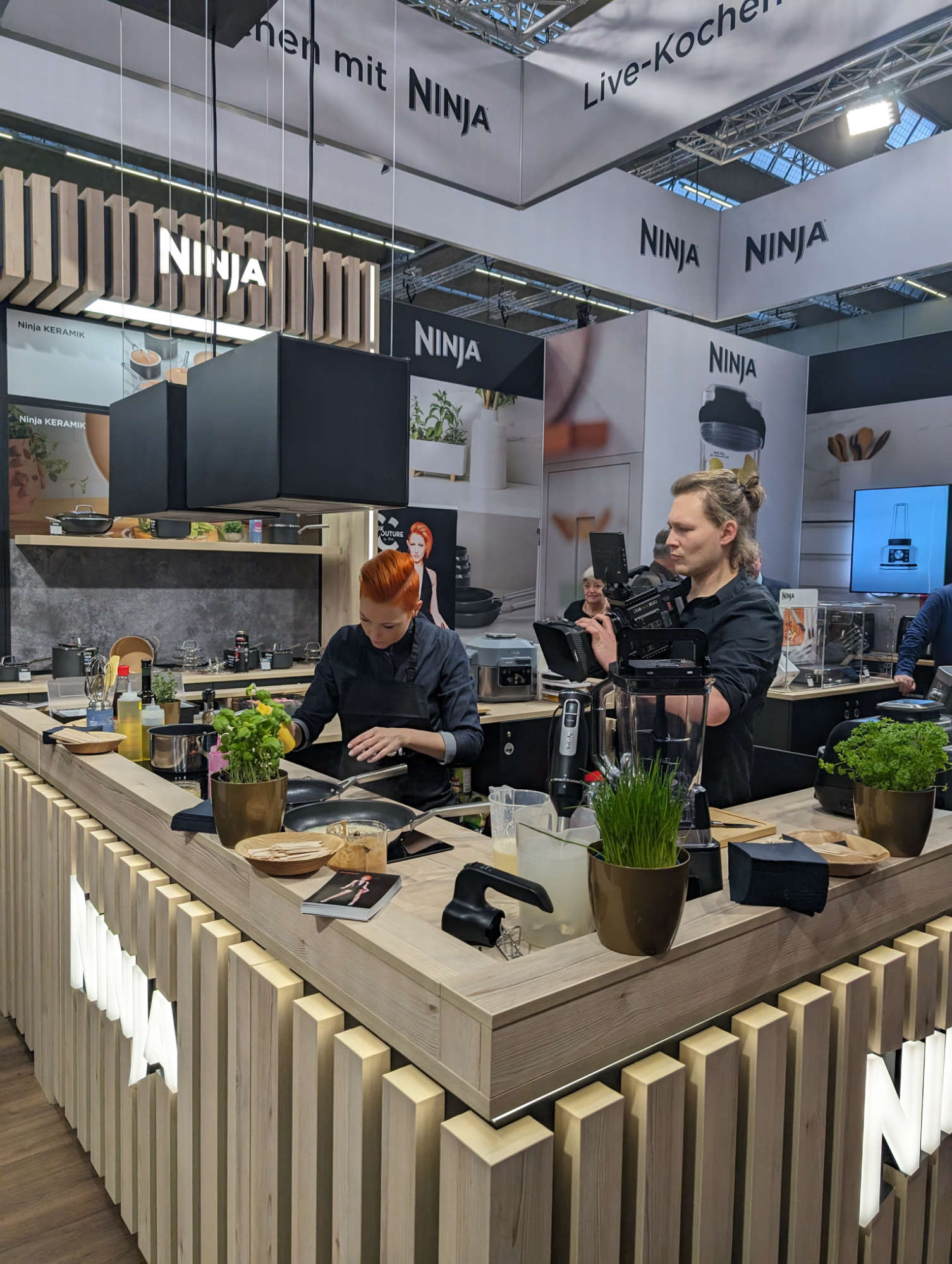 Ein Blick in den Dining-Bereich: Im Segment „Cook & Cut“ in der Halle 8.0 präsentieren sich namhafte Anbieter von Elektrokleingeräten im Produktmix mit Ausstellern zu Küchenausstattung und Küchengadgets: Hier stellen beispielsweise Cloer, Fakir, Gastroback, Graef, llcar di Bugatti, Ninja, Rommelsbacher, Russell Hobbs, SharkNinja, Steba und Unold ihre Neuheiten vor.