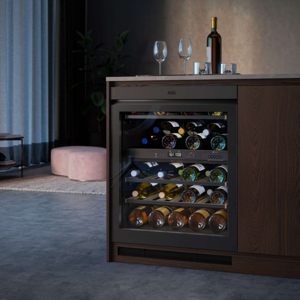 Lange Haltbarkeit, und damit verbunden die anhaltende Freude am Geschmack, steht auch bei den neuen Weinklimaschränken von AEG im Vordergrund. Mit dem 8000 Perfect Shelving Cellar hat die Premiummarke ein rundum durchdachtes und stylisches Regalsystem entworfen, das eine geregelte Luftfeuchtigkeit und UV-geschützte Lagerung sicherstellt und damit die Qualität der Weine länger erhält.