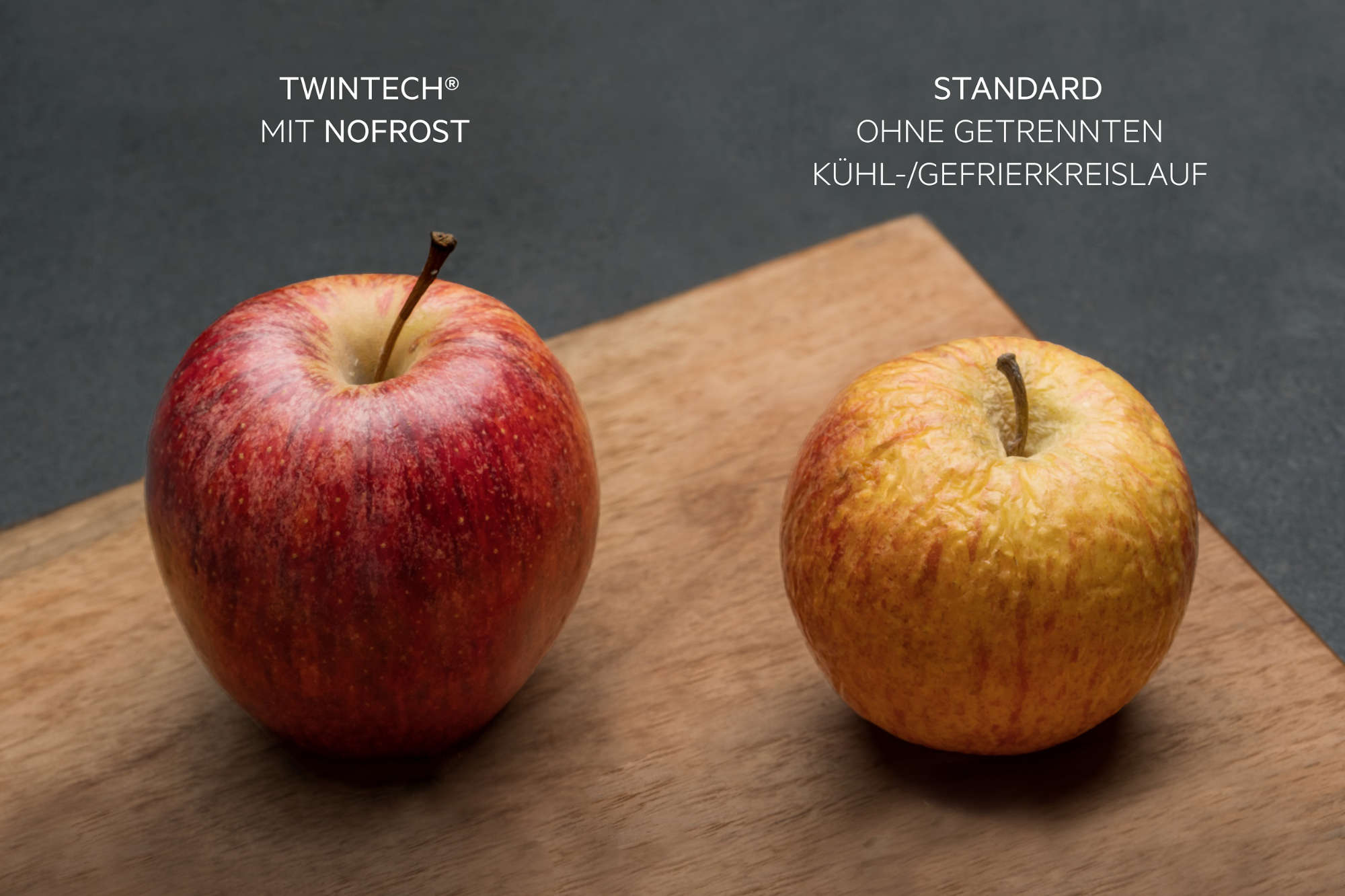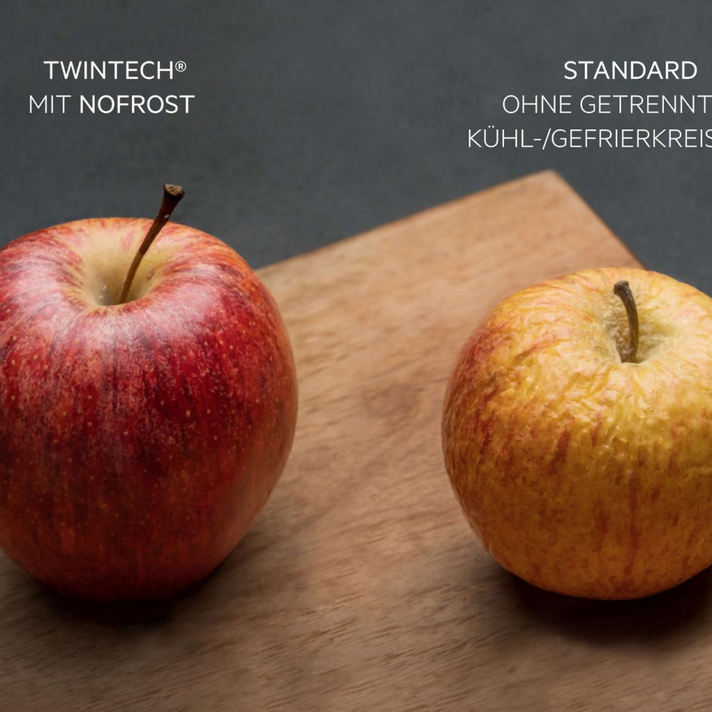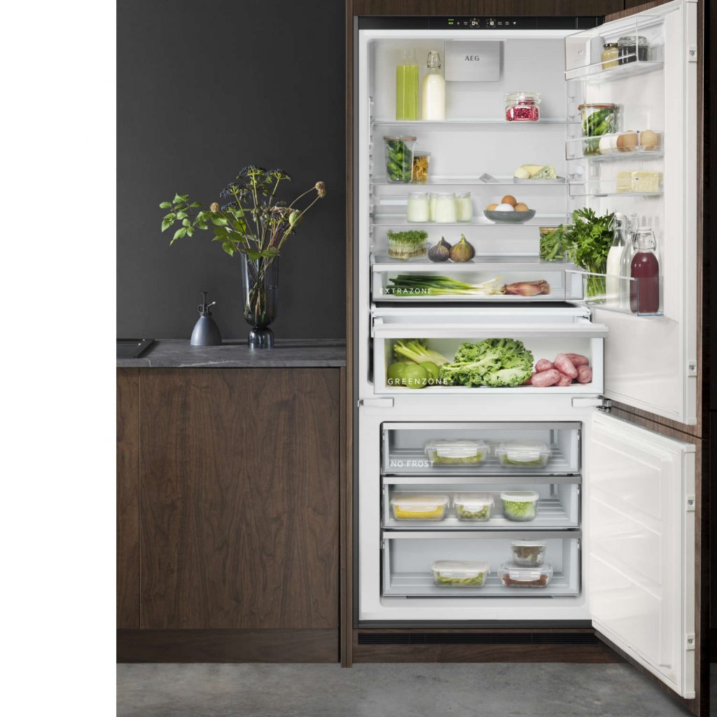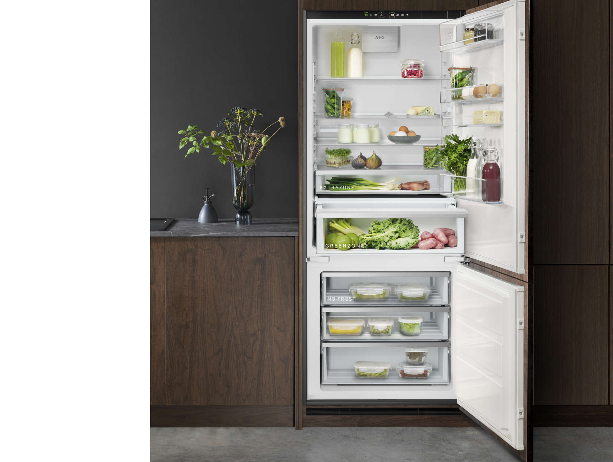 Hinzu kommen ausgefeilte Funktionen wie eine versiegelte Schublade beim 7000 GreenZone, die Obst und Gemüse durch die erhaltene Luftfeuchtigkeit länger frisch hält, oder die TwinTech NoFrost-Technologie ab der 6000er Serie, mit der eine getrennte Luftzirkulation zwischen Kühl- und Gefrierbereich möglich ist. Das garantiert eine ideale Luftfeuchtigkeit. Die Produkte sind so 60% saftiger als ohne diese Technik. Die 360° Cooling-Technologie in der AEG 8000er Serie ermöglicht eine um 40% bessere Temperaturverteilung als bei Standardkühlschränken und leistet so einen wichtigen Beitrag zur Vermeidung von Lebensmittelabfällen.