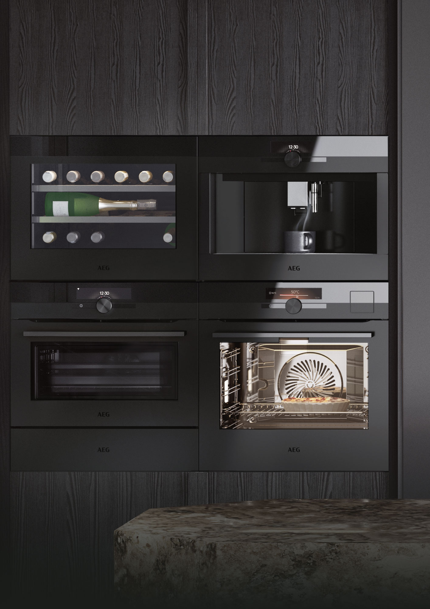 Die Matt Black Range umfasst zwei Backöfen und zwei Kompaktbacköfen, die je nach Modell mit smarten Funktionen wie „SenseCook“, „CombiQuick“ oder „SteamPro“ ausgestattet sind, sowie einen Einbau-Weinkühlschrank, einen Kaffeevollautomaten, eine Wärmeschublade und eine Vakuumierschublade. Die einheitliche Materialität aller Geräte sorgt für eine ungemeinde Flexibilität in der Küchengestaltung, setzt zudem ein überzeugendes Statement in Sachen Geschmack.
