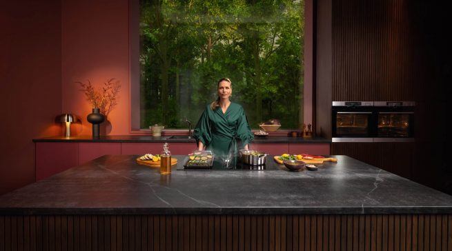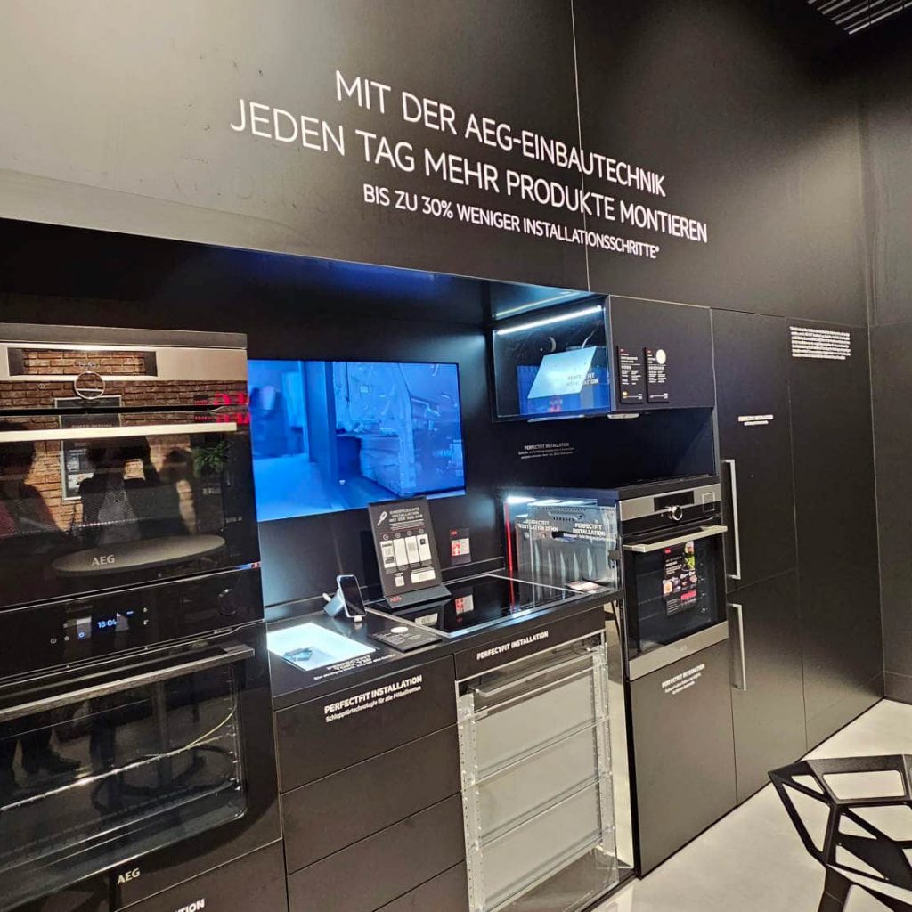 „Neue Möglichkeiten für ein nachhaltigeres Leben entdecken – unter diesem Motto stand für uns die diesjährige Küchenmeile“, so Michael Geisler. Im Mittelpunkt des AEG Auftritts auf der Küchenmeile stand das Induktionskochfeld AEG 8000 Bridge XT SaphirMatt aus kratzfestem Glas. SaphirMatt besticht durch seine elegante, mattschwarze Oberfläche, die besonders widerstandsfähig gegenüber Kratzern und der alltäglichen Abnutzung durch das Verrücken von Töpfen oder Pfannen sowie dem Einsatz von Putzschwämmen ist. Dank seiner speziellen Beschichtung ist es bis zu viermal kratzfester als Standard-Keramikkochfelder.