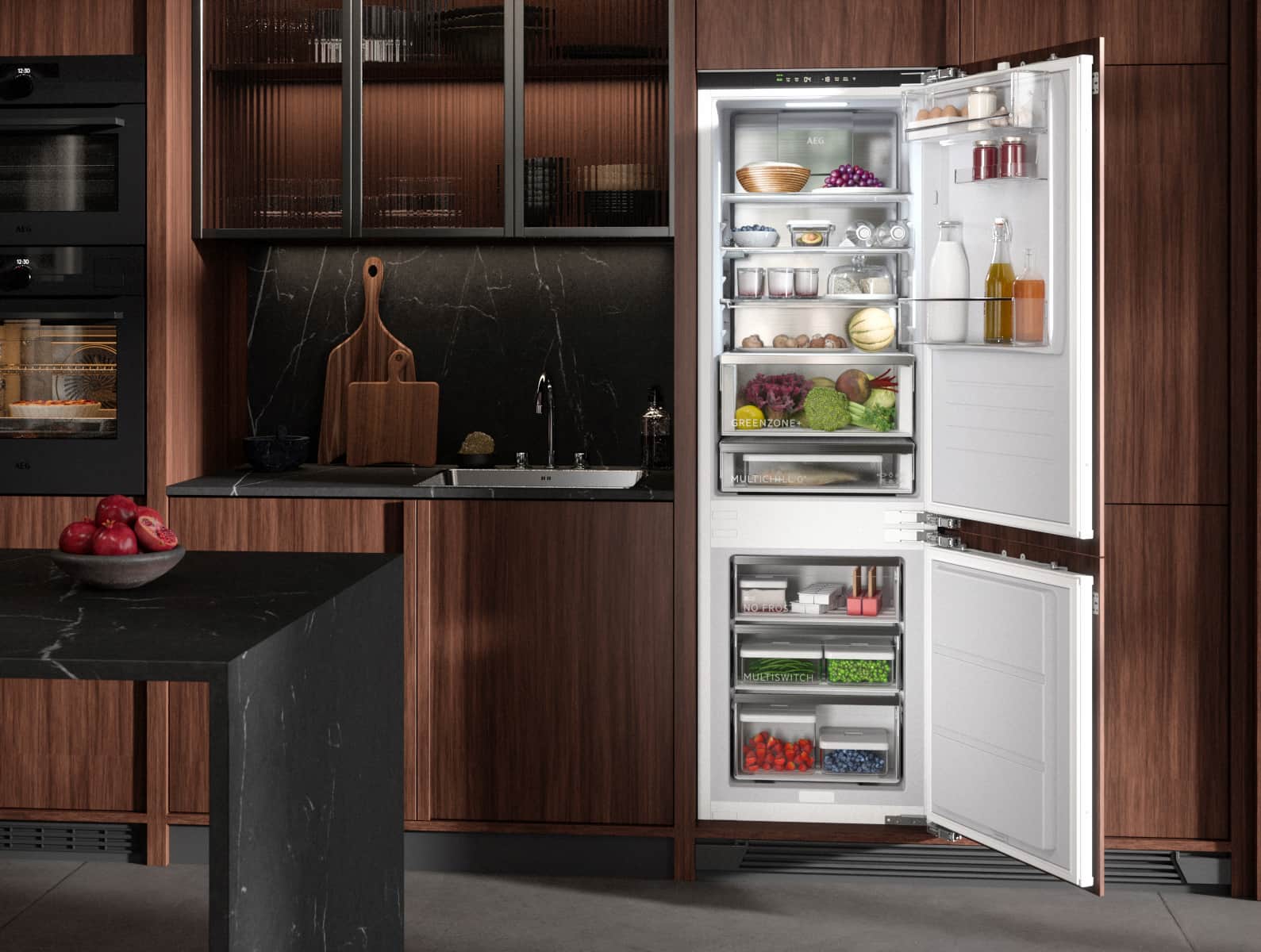 Auch der Bereich Kühlen und Gefrieren wartete mit smarten Technologien auf. Für einen umweltbewussteren Umgang mit Lebensmitteln stattete AEG ihre neue Einbau-Kühl-Gefrierkombination 9000 MultiChill 0°C mit durchdachten Funktionen für mehr Flexibilität und die perfekte Lagerung von Lebensmitteln aus. Während das fortschrittliche Luftzirkulationssystem Cooling 360 sowie GreenZone+ dank automatischer Feuchtigkeitsregelung bis zu 95% der Vitamine erhält, erlangen Nutzer mit der intelligenten MultiChill 0°C-Schublade volle Kontrolle über die perfekte Lagerung empfindlicher Lebensmittel.