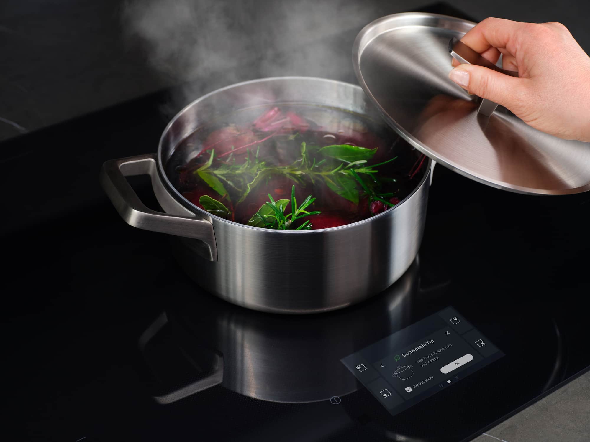 Erstere verhindert das Überkochen von kochendem Wasser, indem der präzise Kochsensor aufsteigende Luftbläschen erkennt und die Temperatur automatisch reguliert, sodass das Wasser heiß bleibt, aber nicht überkocht. SenseBoil & Fry wiederum sorgt für eine konstante Temperatur am Pfannenboden und reguliert exakt die Leistung des Kochfelds, um beim Braten optimale Ergebnisse zu erzielen.