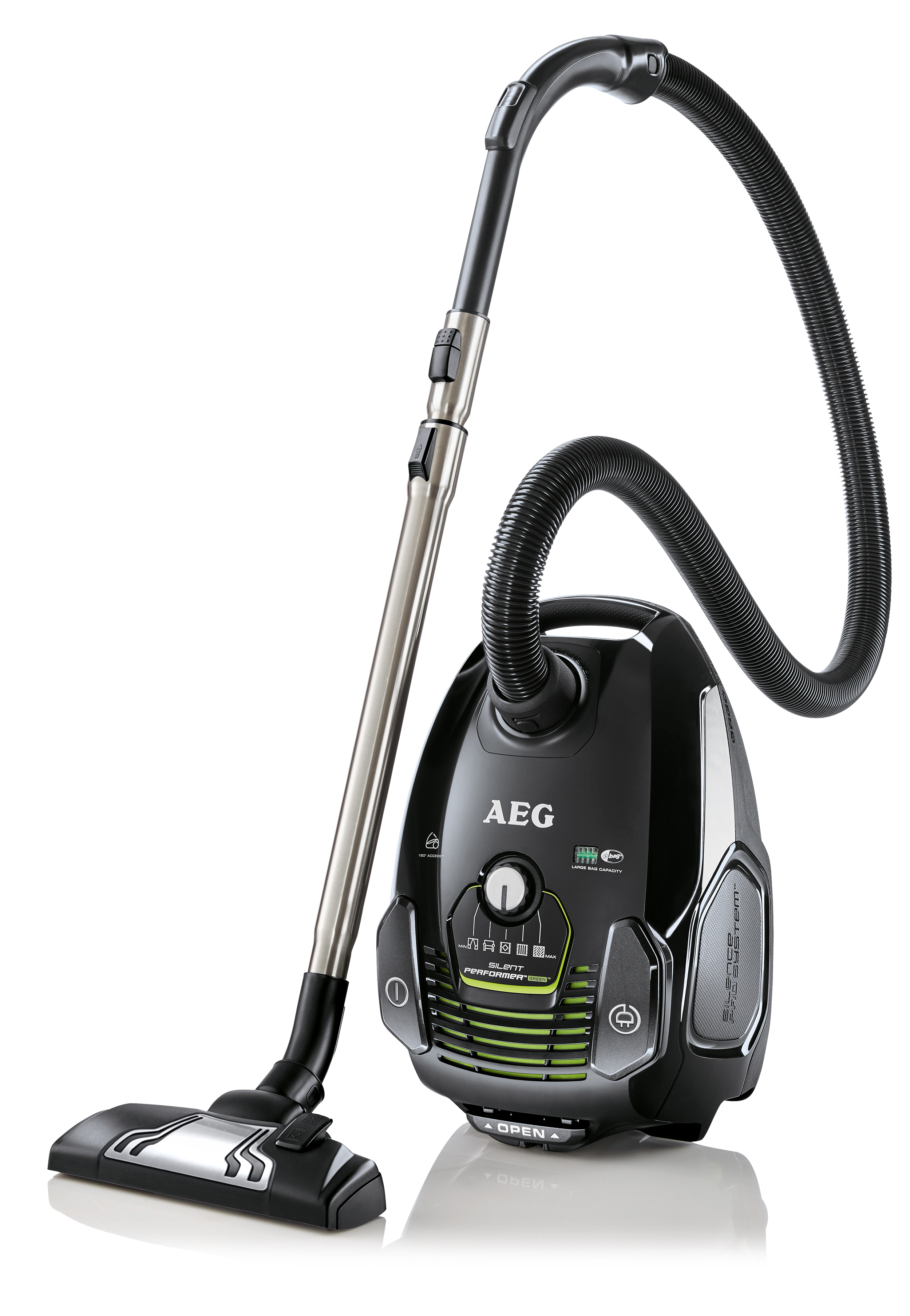 Der AEG Staubsauger SilentPerformer Öko ASP7130 ist aus 60 Prozent hochwertigem Recyclingkunststoff hergestellt und mit 700 Watt Leistung besonders kraftvoll. Dabei gleitet die komfortable, umschaltbare Kombi-Bodendüse mit Klick-Verschluss sanft sowohl über kurz- als auch langflorige Teppichböden.