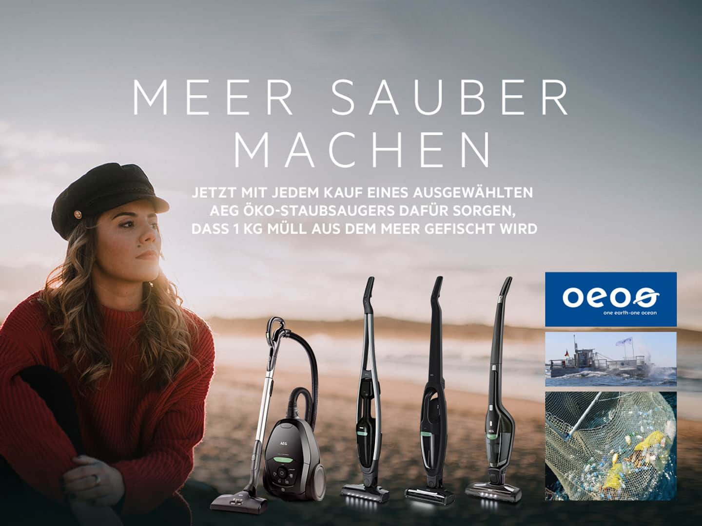 Für jeden innerhalb des Aktionszeitraums verkauften Öko-Akkustaubsauger CX7-2-45MÖ, QX7-1-Öko und QX9-1-Öko und jeden verkauften Öko-Bodenstaubsauger VX82-1-Öko fischt AEG gemeinsam mit oeoo mindestens ein Kilogramm Müll aus dem Meer.