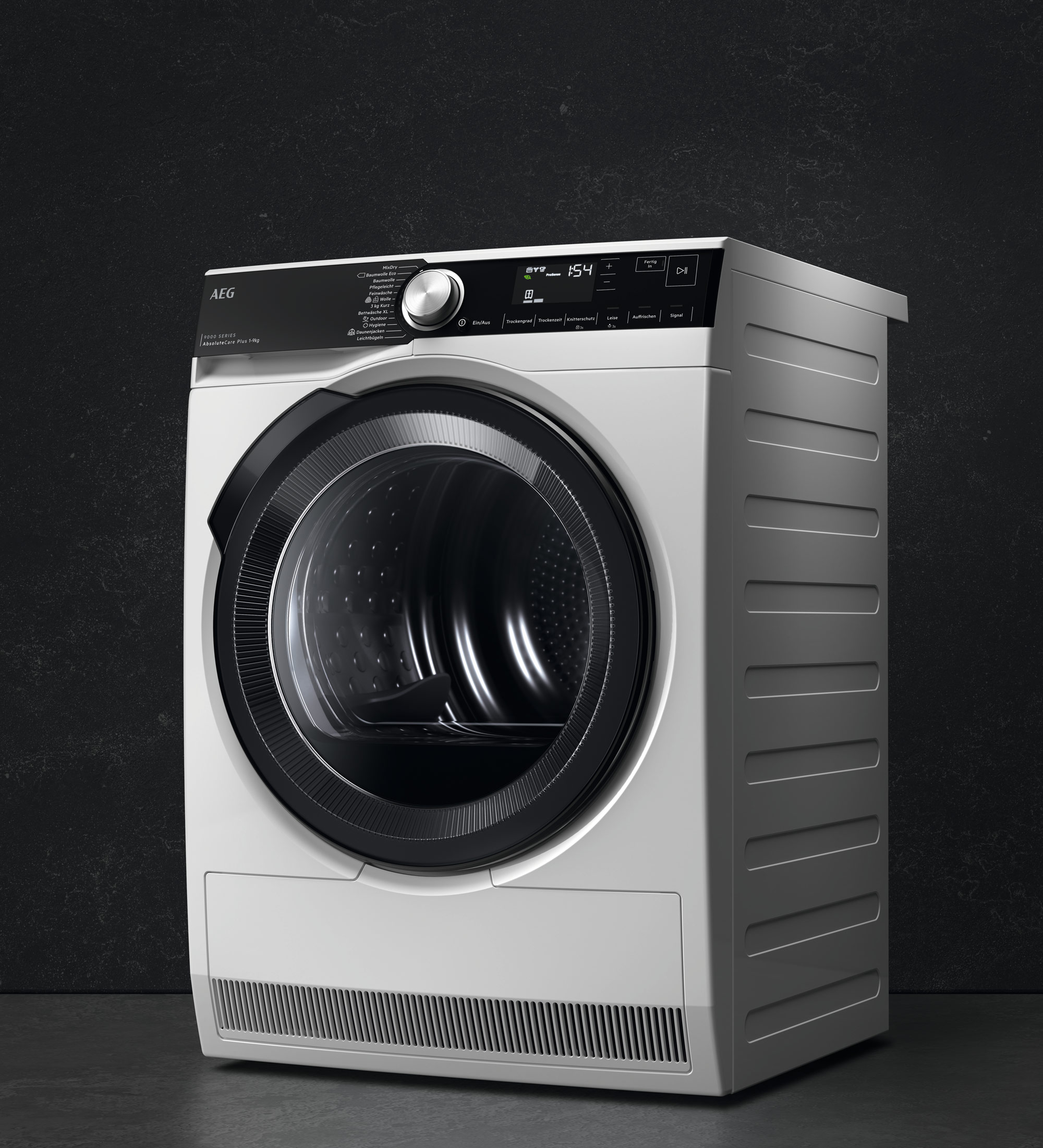 Laut EU-Vorgabe dürfen ab Mitte 2025 nur noch Wärmepumpentrockner vertrieben werden. Zudem werden die Energieeffizienzklassen auf eine Skala von A bis G umgestellt. Die neuen AEG-Modelle mit einem Fassungsvermögen von neun Kilogramm erreichen dabei bereits jetzt die A-Klassifizierung.