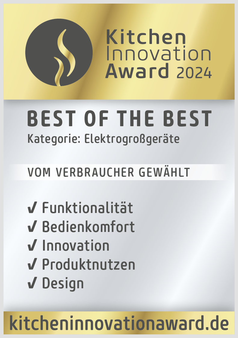 Die Tester des Awards nahmen Produkte in neun Kategorien unter die Lupe und bewerteten zahlreiche Geräte. Das SaphirMatt-Induktionskochfeld stach dabei in der Kategorie Elektrogroßgeräte besonders hervor und wurde mit dem Golden Award als „Best of the Best“ prämiert.