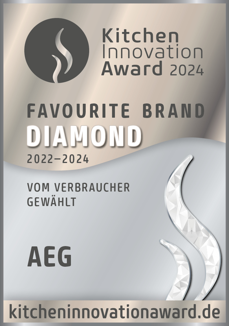 Beim diesjährigen Kitchen Innovation Award überzeugte das AEG-Induktionskochfeld 8000 BridgeXT mit integriertem Dunstabzug und SaphirMatt-Oberfläche neben der Expertenjury auch die Verbraucher. AEG wurde außerdem mit dem Siegel „Favourite Brand Diamond“ prämiert.