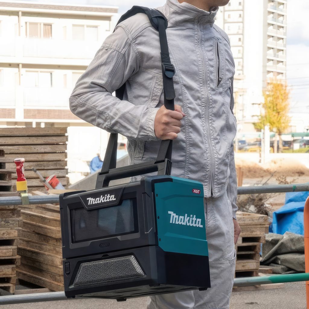 Laut Makita ermöglicht die neue akkubetriebene Mikrowelle das Erwärmen von Speisen in verschiedenen Umgebungen, in denen möglicherweise keine Netzstromquelle verfügbar ist: