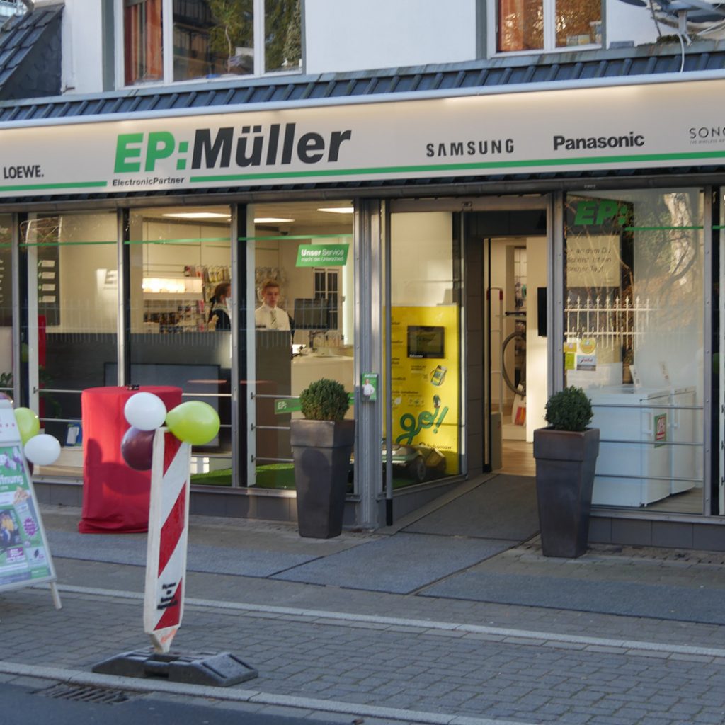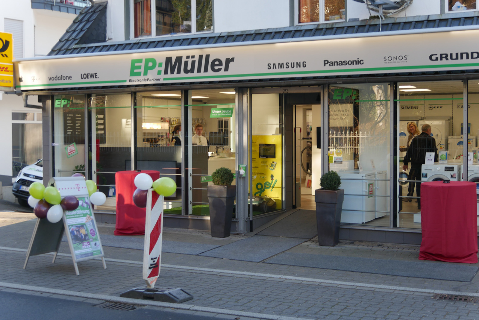 Auf rund 300 Quadratmetern präsentierte das Team von EP:Müller Produkte und Lösungen aus den Bereichen Unterhaltungs- und Haushaltselektronik, IT/Multimedia, Telekommunikation und Sicherheitstechnik. Über allem stand der Wunsch, die Geräte zu inszenieren, sie erlebbar zu machen, egal ob TV, Telekommunikation, Kühlschrank, Kaffee-Vollautomat oder Zahnbürste.