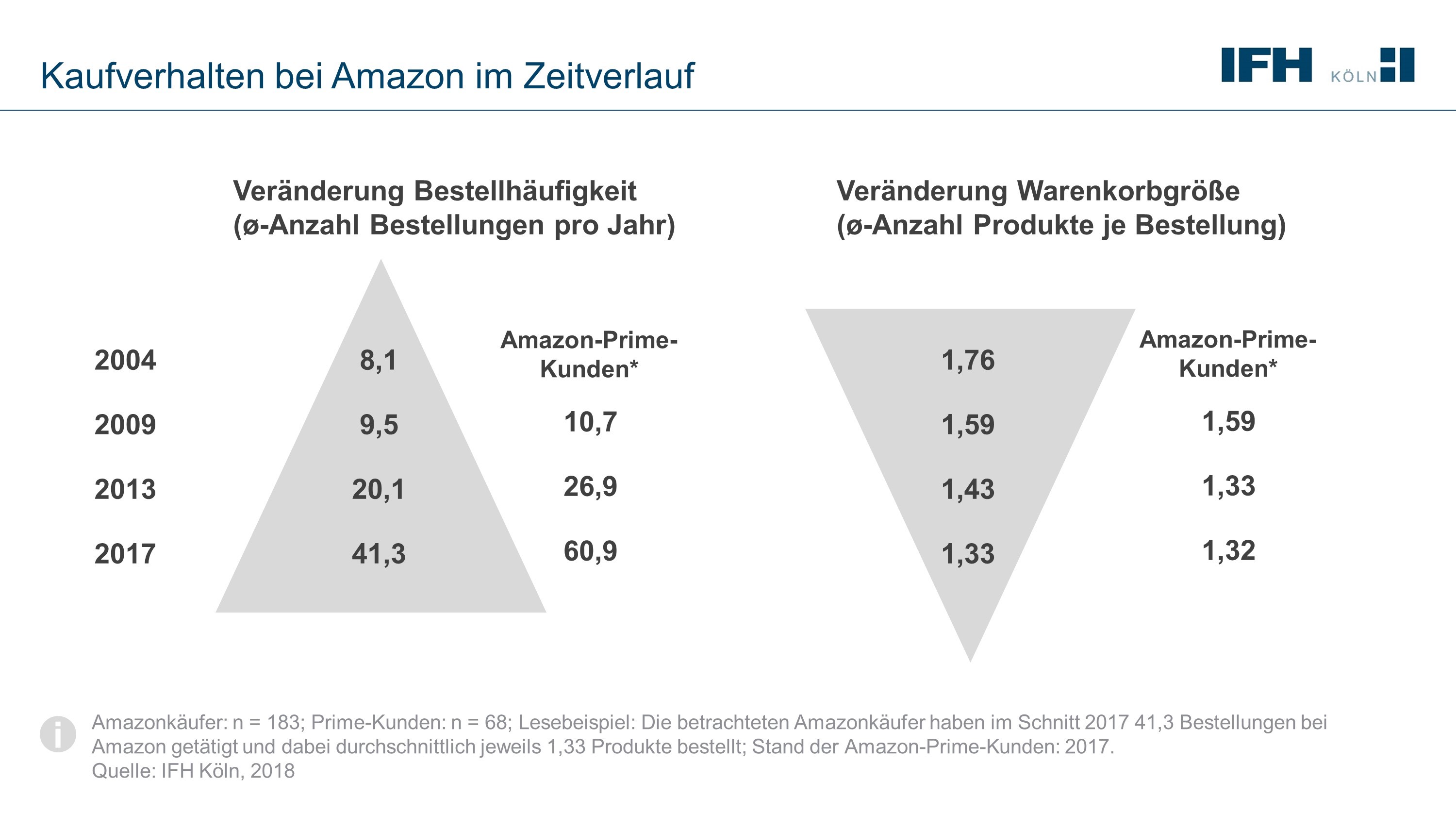 - 2004 bestand eine Amazon-Bestellung im Schnitt aus 1,8 Artikeln; 2017 waren es durchschnittlich 1,3 Artikel.