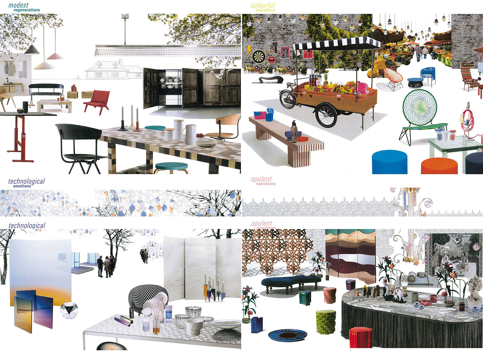 Eine mutige Trendwelt mit einem Hang zur Exzentrik und historischen Zitaten. Orientalisches, kostbare Materialien und Liebe zu prachtvollen Details prägen diesen malerischen Look. Eingesetzt werden kunstvoll verziertes Porzellan, edle Steine, aufwändige Lederarbeiten, Brokate, Stickereien und Relief-Schnitzereien.