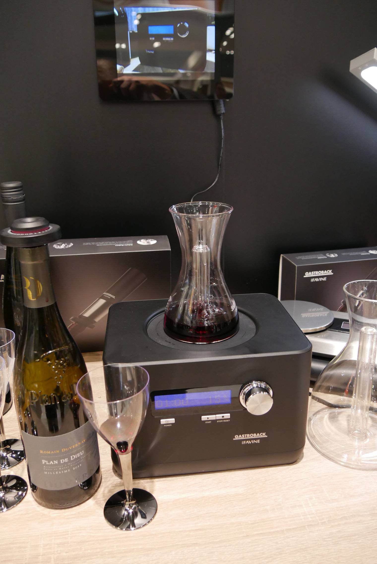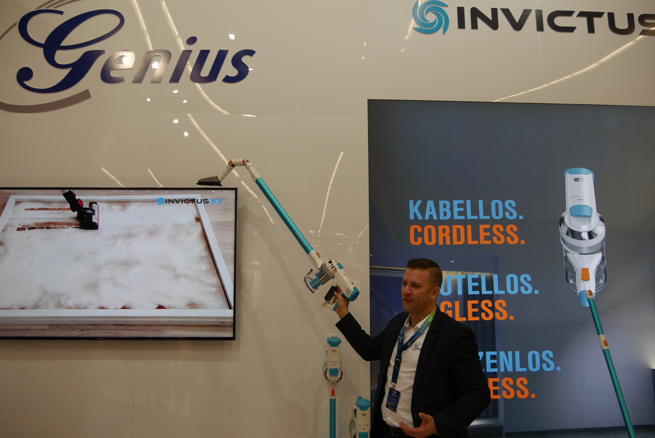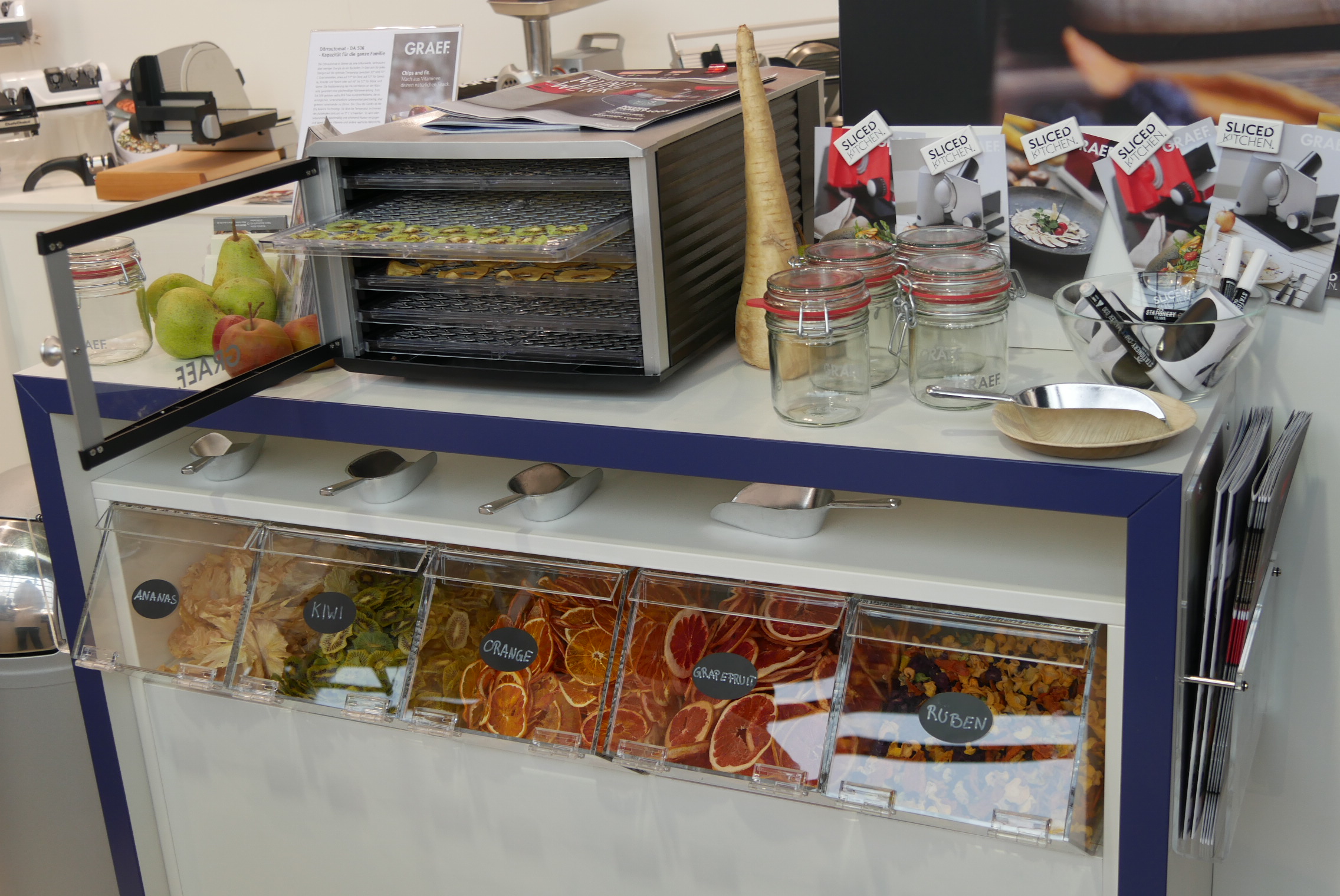 Dörrautomaten gibt es auch einige Meter weiter auch. Aber als schnöde Regalware ohne entsprechende Promotion fristen sie eher ein Schattendasein. Was zudem im Reich der Blender und Küchenmaschinen auffiel, war von Caso der „Sound & Cool“, eine ungewöhnliche Kombination aus Soundbar, Getränkekühler und Lounge-Tisch, der kabellose Einbau-Stabmixer von Ritter, Ritter „unplugged“ eben, sowie der Akkusauger „Invictus X7“ von Genius, ein Kraftprotz für die effiziente Tiefenreinigung mit allerhand durchdachten Details für maximale Flexibilität im Alltag, den man überall vermutet hätte, nur eben nicht auf der Ambiente.