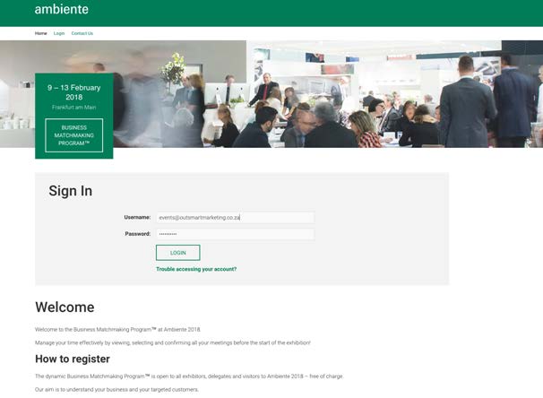 Wer bereits ein Ticket für die Ambiente besitzt, ist automatisch beim Business Matchmaking-Programm dabei und loggt sich mit den bekannten Messe-Zugangsdaten ein. Alle anderen Fachhändler und Einkäufer können sich vorab kostenfrei für das Programm registrieren. Je genauer Interessen angegeben werden, desto mehr passende, interessante und neue Kontaktempfehlungen werden vorgeschlagen.