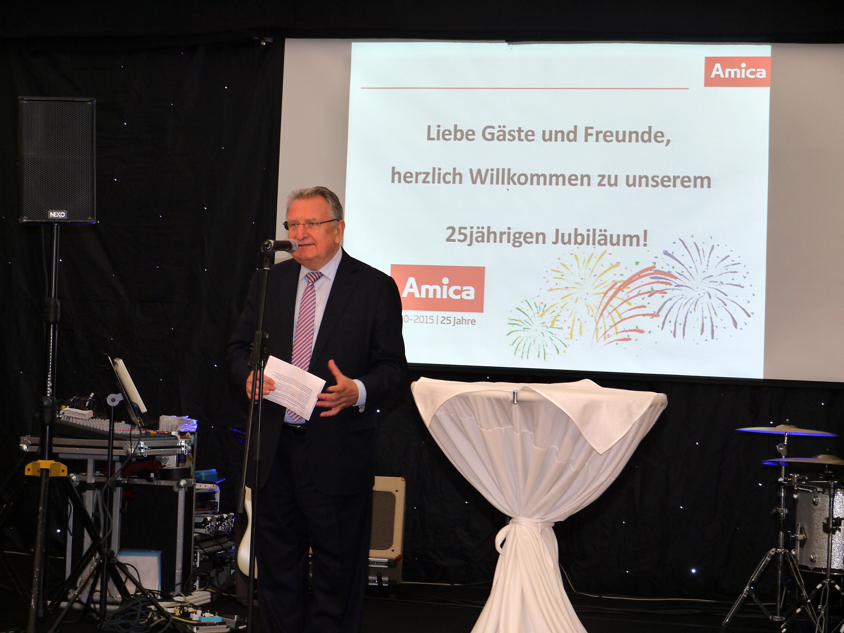 Die Einweihung war gut getimt. Denn Amica International blickt in diesem Jahr auf 25 Jahre Firmengeschichte zurück. Wahrlich ein Anlass, um mit Mitarbeitern, Kunden und Lieferanten ausgiebig zu feiern. Büttner und insbesondere Rutkowski gaben einen Abriss über die Amica-Erfolgsstory in Deutschland. „Mit ganz wenigen Millionen DM Umsatz und drei Mitarbeitern habe man in 1990 angefangen und für das laufende Jahr strebe man 125 Millionen Euro an“, so der Vorstandsvorsitzende. Er erinnerte unter anderem auch an die „goldene Zeit“ als zur Wende in der ehemaligen DDR zwei bis drei Millionen Gasherde ausgetauscht werden mussten. Damals hieß die Parole „Wann kannst Du liefern, nicht was es kostet“. Ein Paradies für Vertriebsleute, schmunzelte verschmitzt Rutkowski.