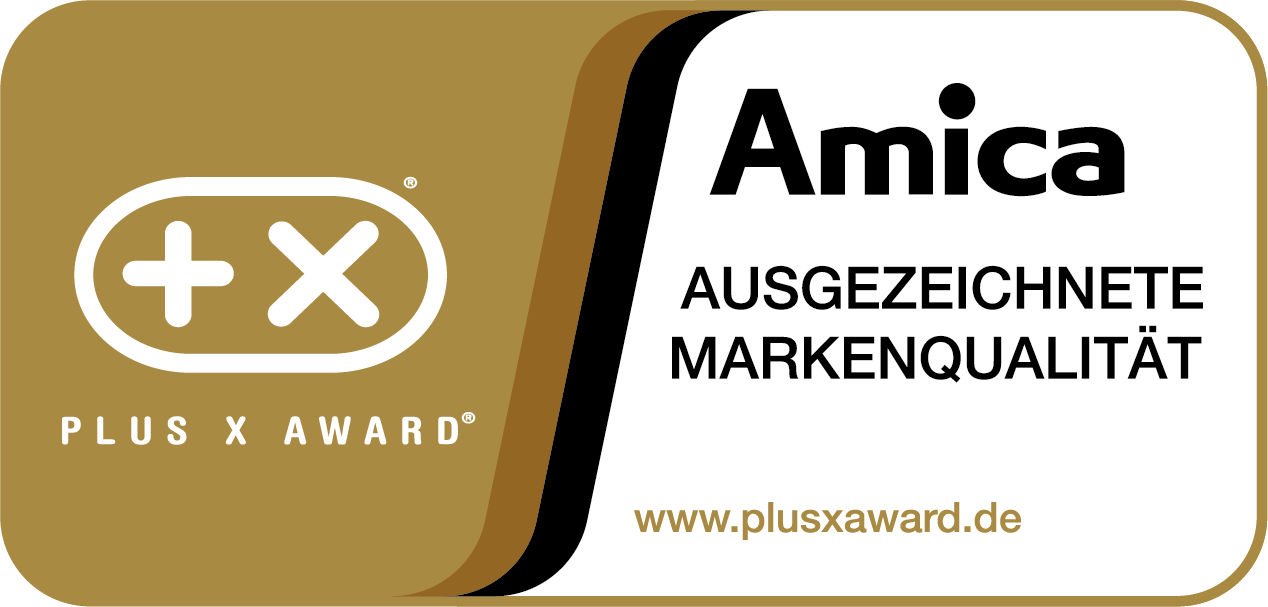 Die Marke Amica wurde mit dem Plus X Award für „Ausgezeichnete Markenqualität“ ausgezeichnet. Der Plus X Award würdigt damit die Beständigkeit von Amica in den Bereichen Qualität, Design und Innovation. Mit mehr als 70 Jahren Erfahrung bietet Amica Geräte, die nicht nur die Anforderungen moderner Haushalte erfüllen, sondern auch durch neue Ausstattungsmerkmale den Alltag erleichtern.