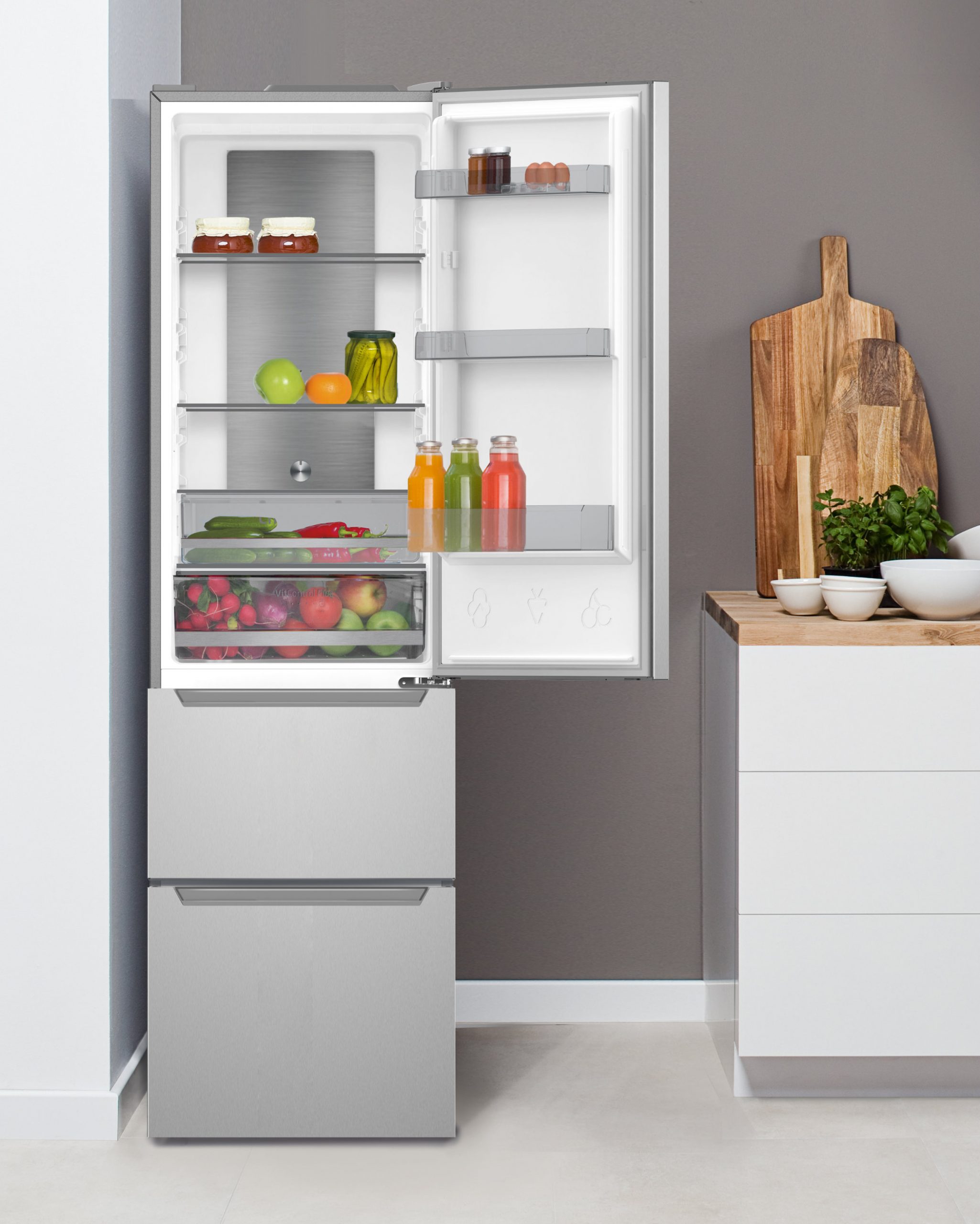 Die Amica Kühl- /Gefrierkombination KGCN 389 150 E bietet auf 192 cm Höhe 197 l Kühlvolumen und 85 l Gefrierkapazität, aufgeteilt in zwei große, von oben befüllbare Schubladen.
