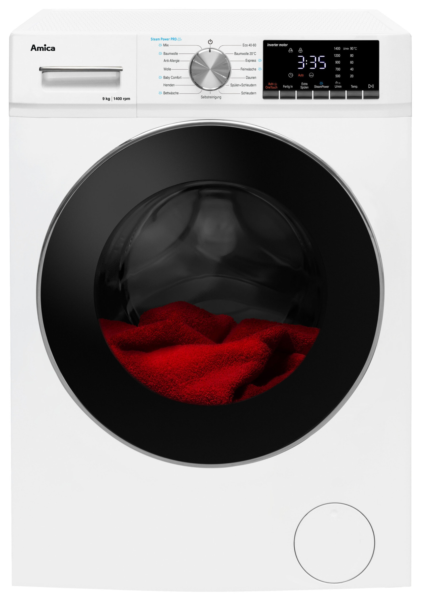 Mit 15 voreingestellten Programmen, SteamTouch für mehr Hygiene und einer Schleuderleistung von 1.400 Umdrehungen pro Minute ist das Gerät ausgerüstet.