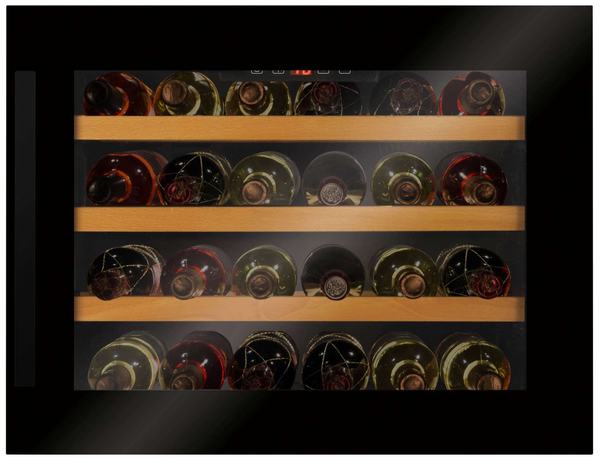 Das Gerät verfügt über zwei Temperaturzonen und wird so unterschiedlichen Trinktemperaturen verschiedener Weine gerecht. Zur Ausstattung des Weinkühlschranks gehören weiterhin ein Feuchtigkeitssystem, Ventilator und ein vibrationsarmer Kompressortechnik. Eine 3fach verglaste Tür aus Rauchglas schützt vor schädigenden UV-Strahlen.