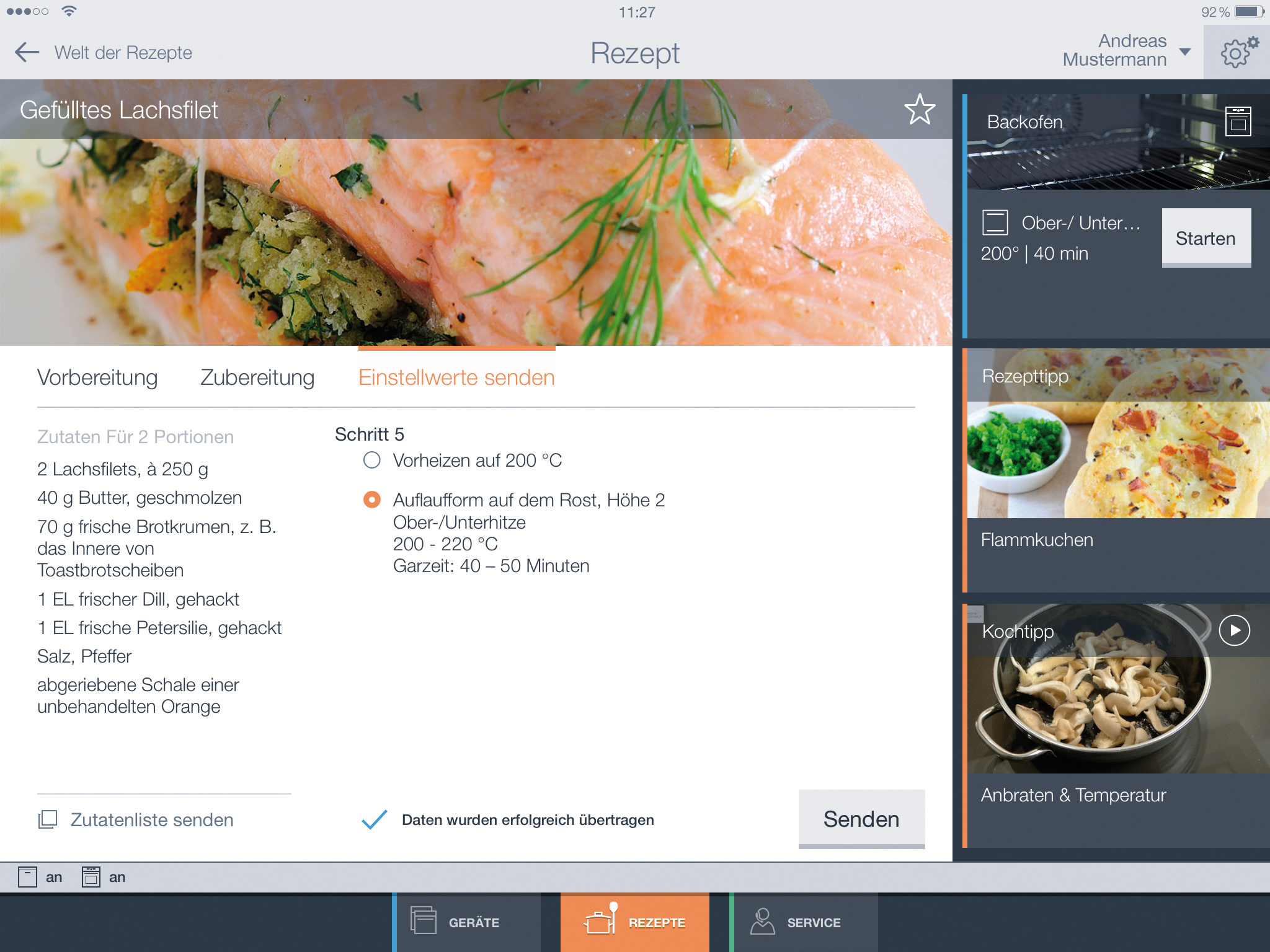 Siemens_iQ700 Backofen mit Mikrowelle_iPad_Rezept (Bild: AMK)