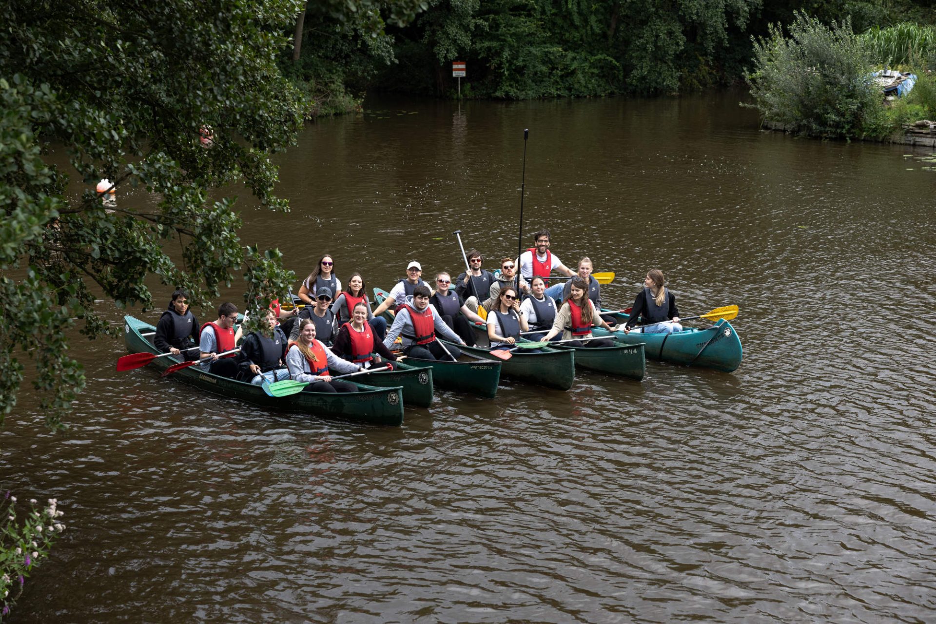 Ein zentrales Element der Fahrt war die gemeinsame Kanutour auf der Wümme. Die sportliche Aktivität diente zugleich der Förderung von Teamarbeit. „Man hat am Ende gemerkt, dass je mehr man zusammenhält, desto besser und schneller kommt man voran“, resümiert Glen Tippe, Auszubildender im Bereich Fachinformatik für Anwendungsentwicklung.