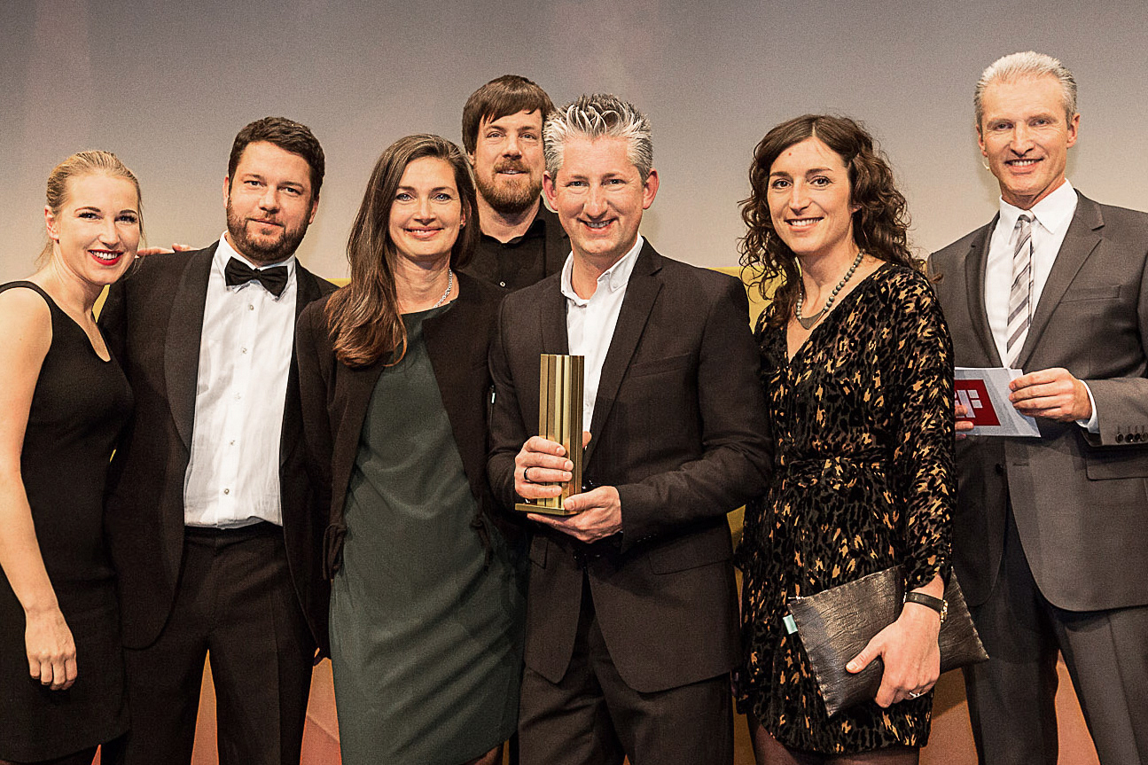 Gaggenau gewinnt gold award: Juliette Gygi, Marketing Manager Gaggenau, Georg Thiersch, Geschäftsführer und Partner von eins:33, Lina Micus, Projektleitung bei eins:33, Sven Baacke, Leitung Markendesign Gaggenau, Hendrik Müller, Geschäftsführer und Partner von eins:33, Christine Neulinger, Projektarchitektin bei eins:33 und Ralph Wiegmann, Geschäftsführer iF International Forum Design (v.l.n.r.).