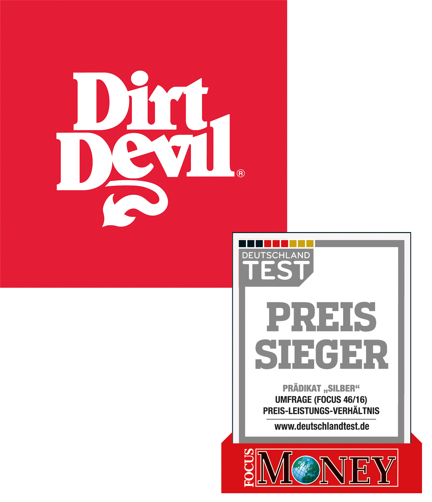 Dirt Devil ist eine starke Marke mit gutem Preis-Leistungsverhältnis - ausgezeichnet im Deutschland Test von Focus-Money mit dem „Preissieger“ in Silber.