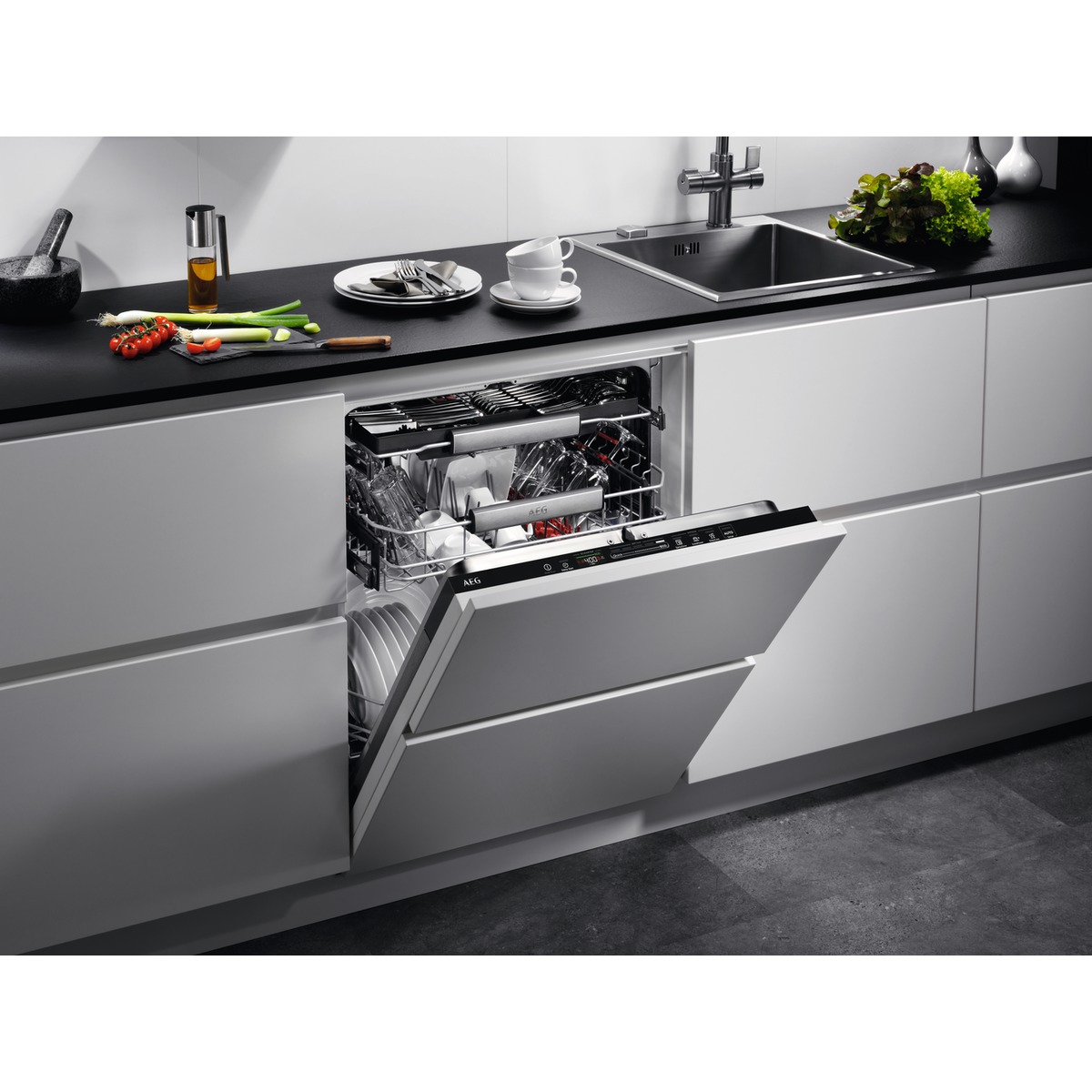 Mit AEG-QuickSelect bestimmen Sie mit nur einem Finger, wie lange die Geschirrreinigung dauert. Dabei zeigt Ihnen der Ecometer, wie ökologisch der gewählte Spülgang ist. Wählen Sie zwischen einem langsameren, aber energieeffizienten Programm oder bei Bedarf einem schnellen Reinigungsprogramm mit