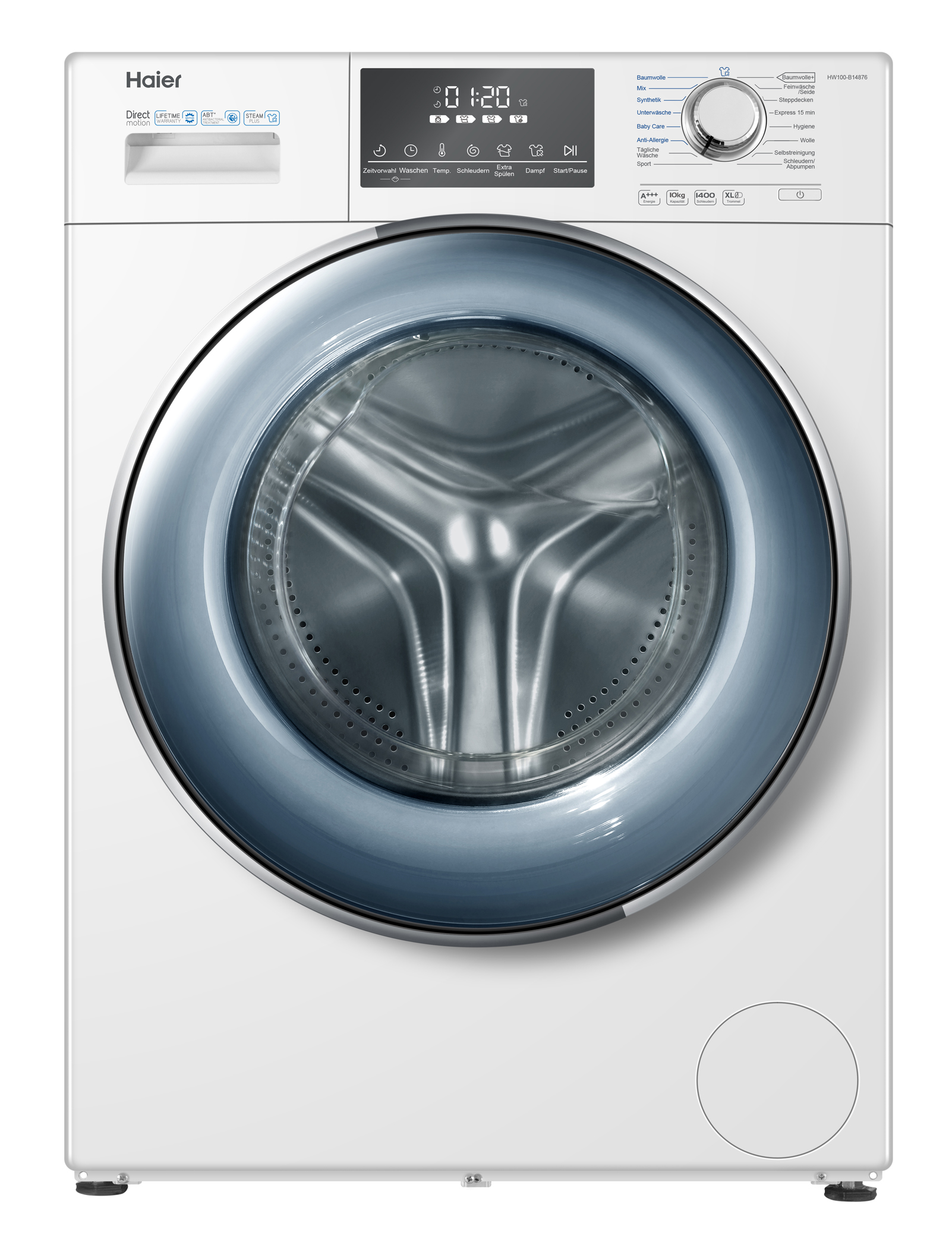 Die Haier Waschmaschine HW100-B14876 hat ein Fassungsvermögen von 10 kg. Mit 65 dB beim Schleudern ist die Maschine besonders leise. Dafür sorgt der Direct-Motion-Motor. So ist das Gerät vor allem für Haushalte in Mehrfamilienhäusern geeignet, wo die Geräte häufig in der Küche oder im Badezimmer untergebracht werden müssen – und dennoch niemanden stören sollen.