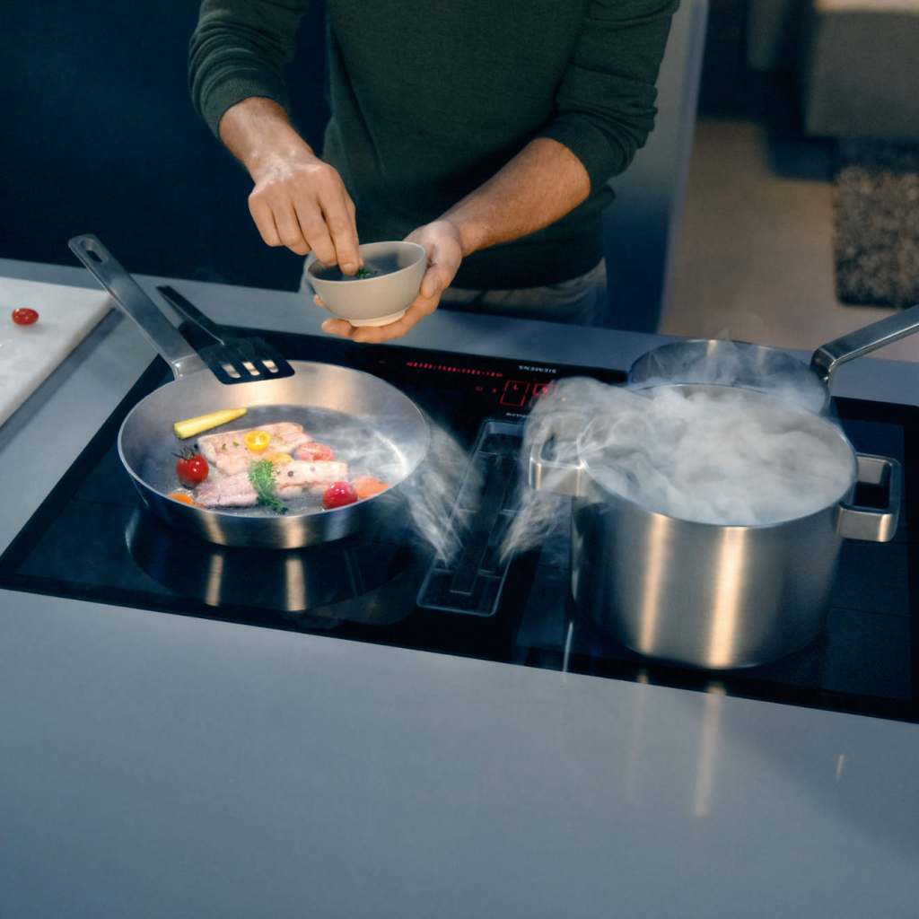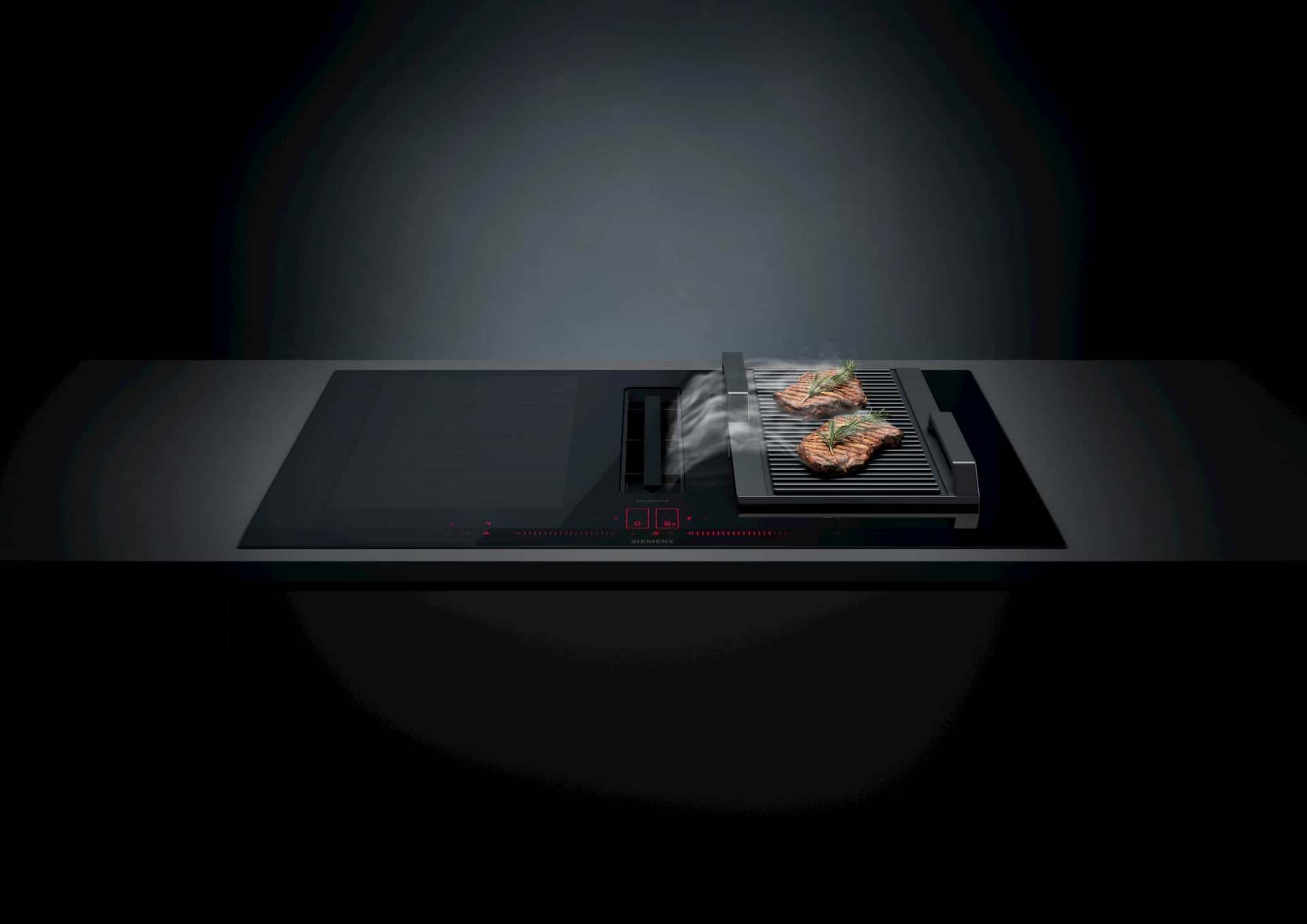 Siemens Hausgeräte bietet Design-Kochfelder mit integriertem Dunstabzug nun auch ab 60 cm Breite an. ^