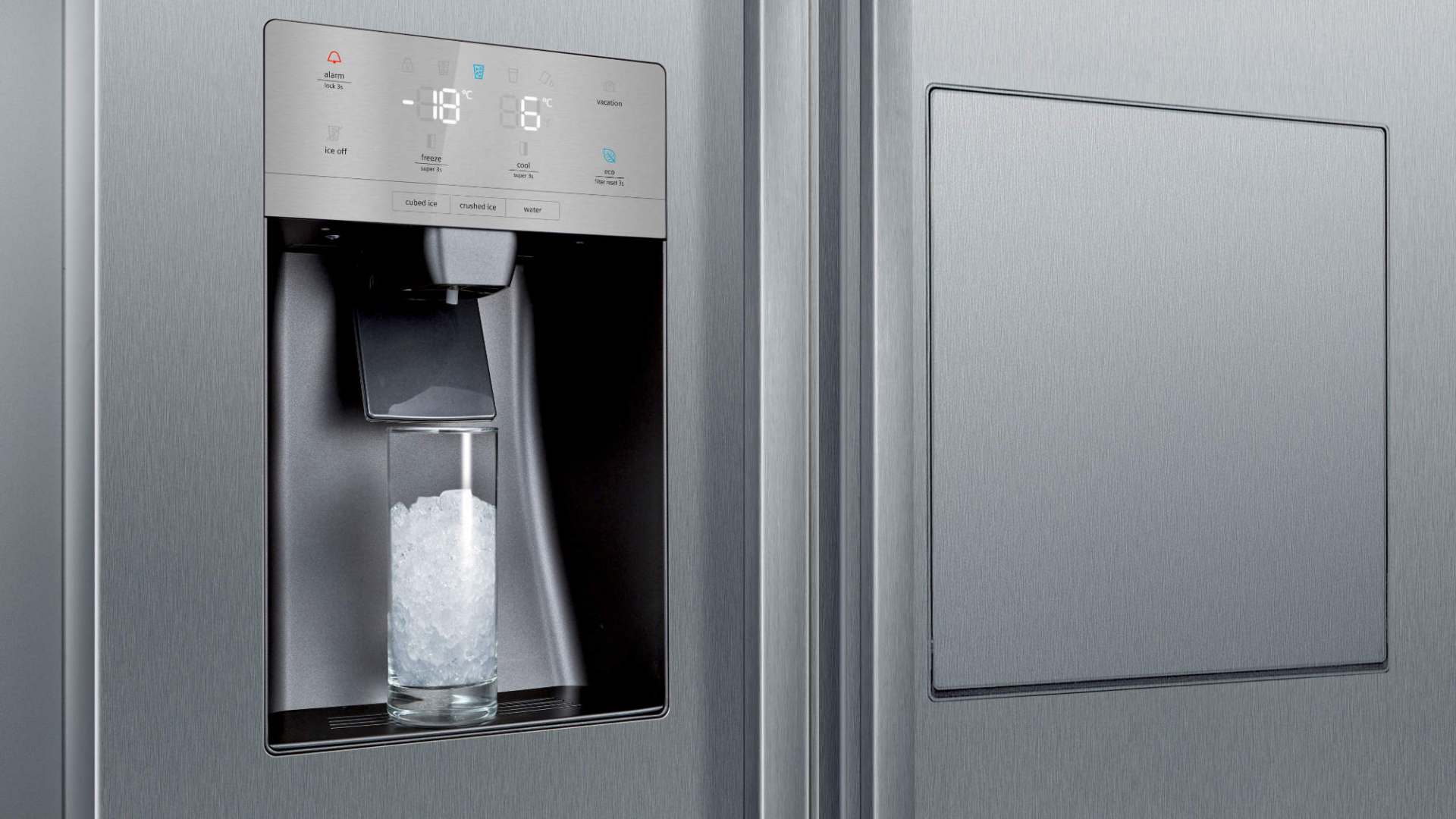 Neben Lagerplatz gewinnen Besitzer des KA93GAIEP vor allem Lebensqualität. So ist es beispielsweise ein Leichtes, den Tag mit einem Sundowner auf Couch oder Balkon ausklingen zu lassen: Der zweitürige Riese wartet nämlich mit einem speziellen Barfach auf, durch dessen Klappe direkt ins Getränkefach durchgegriffen werden kann. Heruntergelassen wird sie zur Mini-Abstellfläche, auf der Getränke eingeschenkt, gemixt und dekoriert werden können. Auch Drinks „on the rocks“ sind im Handumdrehen fertig. Denn gleich neben dem Barfach befindet sich ein Eiswürfelspender mit bis zu 1,8 Kilogramm Fassungsvermögen. Eiswürfel oder Crushed Ice serviert das Raumwunder direkt ins Glas, ebenso übrigens wie erfrischend eiskaltes Wasser.