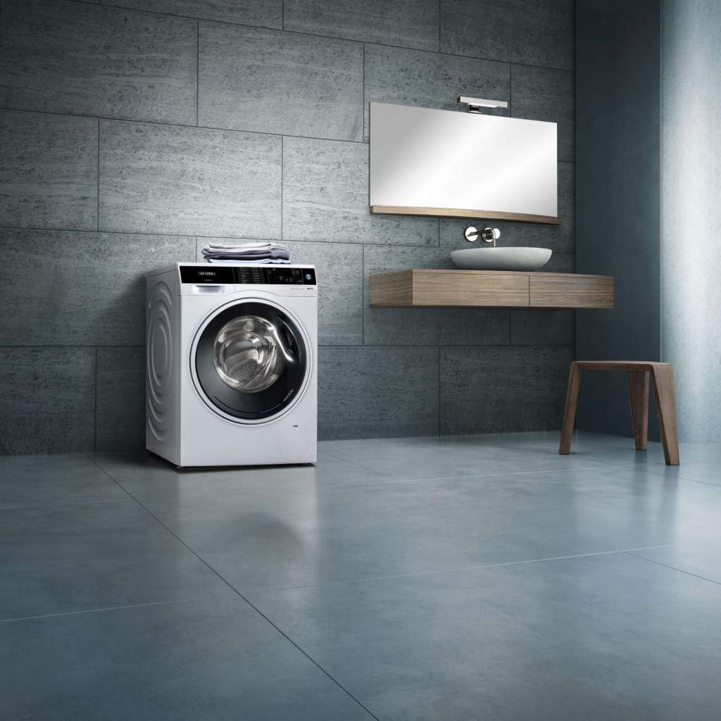 Die neuen iQ500 Waschtrockner von Siemens waschen, trocknen und entlasten in einer Tour. ^
