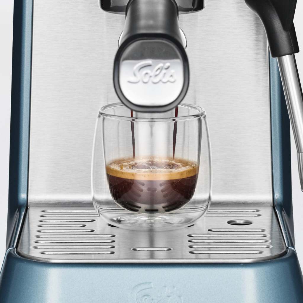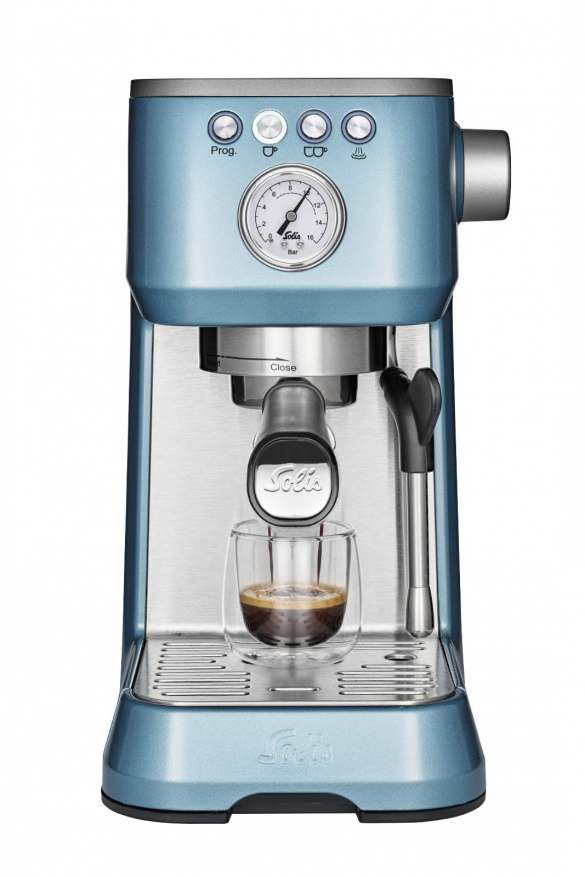 Nach der erfolgreichen Einführung der neuen SOLIS Perfetta -Serie kommt der kompakte Siebträger nun in der Trendfarbe Vintage Blue, die Farbe der 60er und 70er Jahre als Retroblau daher.