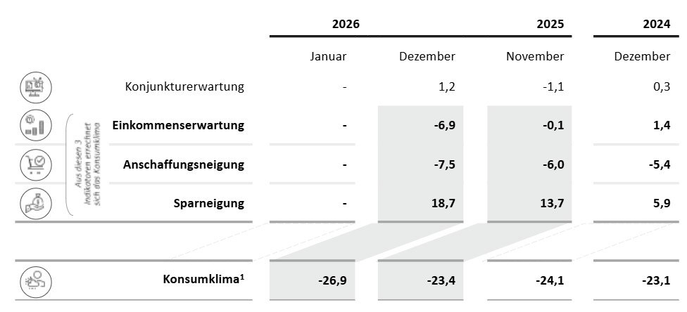 ]]>Der Beitrag Konsumklima zum Jahreswechsel 2025/2026: Deutlicher Rückgang der Verbraucherstimmung erschien zuerst auf infoboard.de.