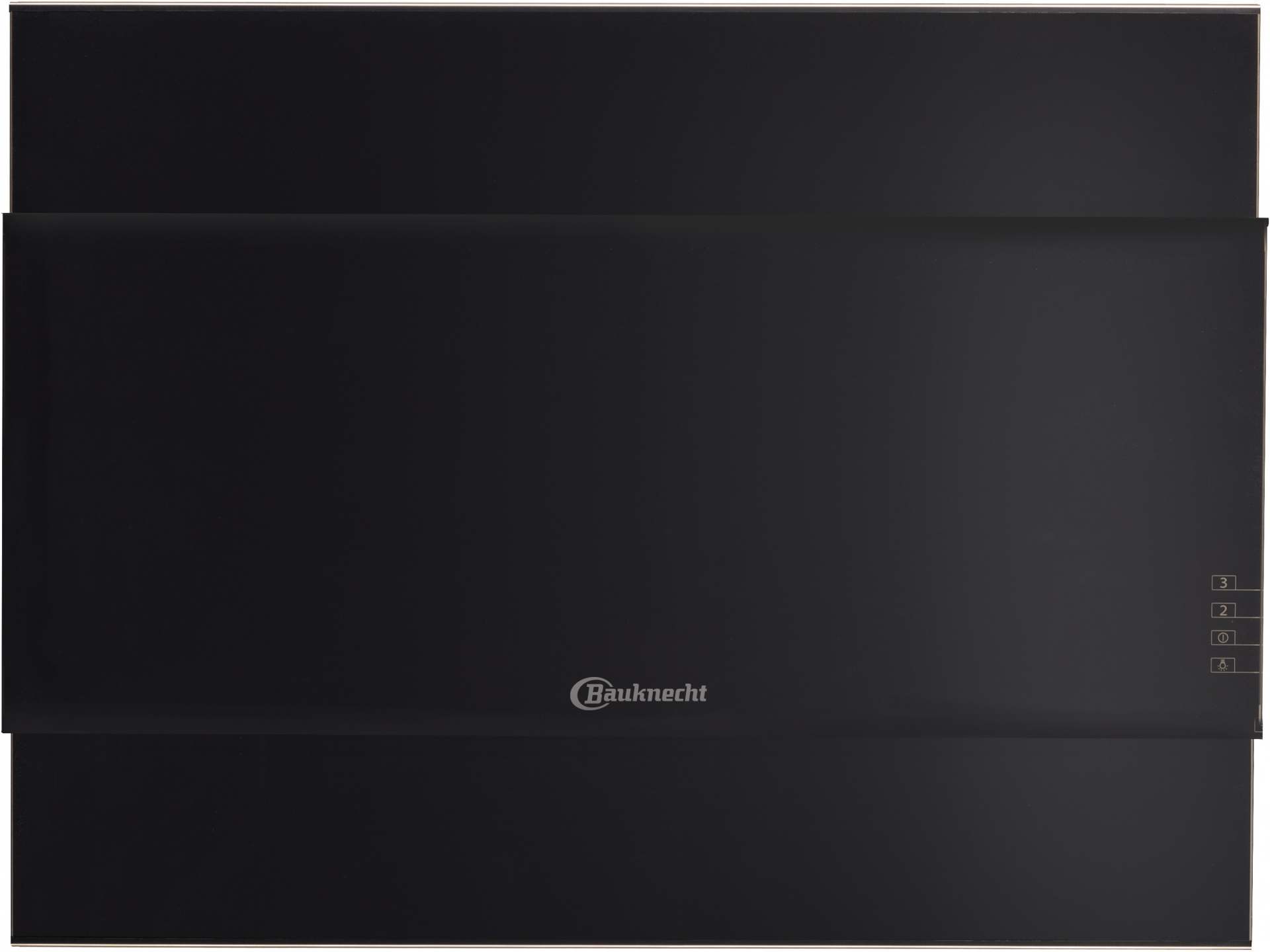 Die Bauknecht BlackLine Designhaube DWGR 9780 ES besticht durch ihr edles Aussehen in elegantem Schwarz. Die Wandesse ist für Abluft- und Umluftbetrieb geeignet. Die elektronische Steuerung geschieht über Leichtdrucktasten auf der rechten seite – hier solle möglichst kein schrank geplant werden. Das Kochfeld wird über zwei 20 Watt starke Hallogenlampen komplett ausgeleuchtet. Dank des leistungsstarken Motors und drei starke Leistungsstufen arbeitet sie besonders effizient und dabei trotzdem geräuscharm durch die Randabsaugung. Gegen Aufpreis sind ein auswaschbarer Aktivkohlefilter für Umluftbetrieb AMC 036 und ein Kaminaufsatz für Abluftbetrieb AMC 053 IX erhältlich.
