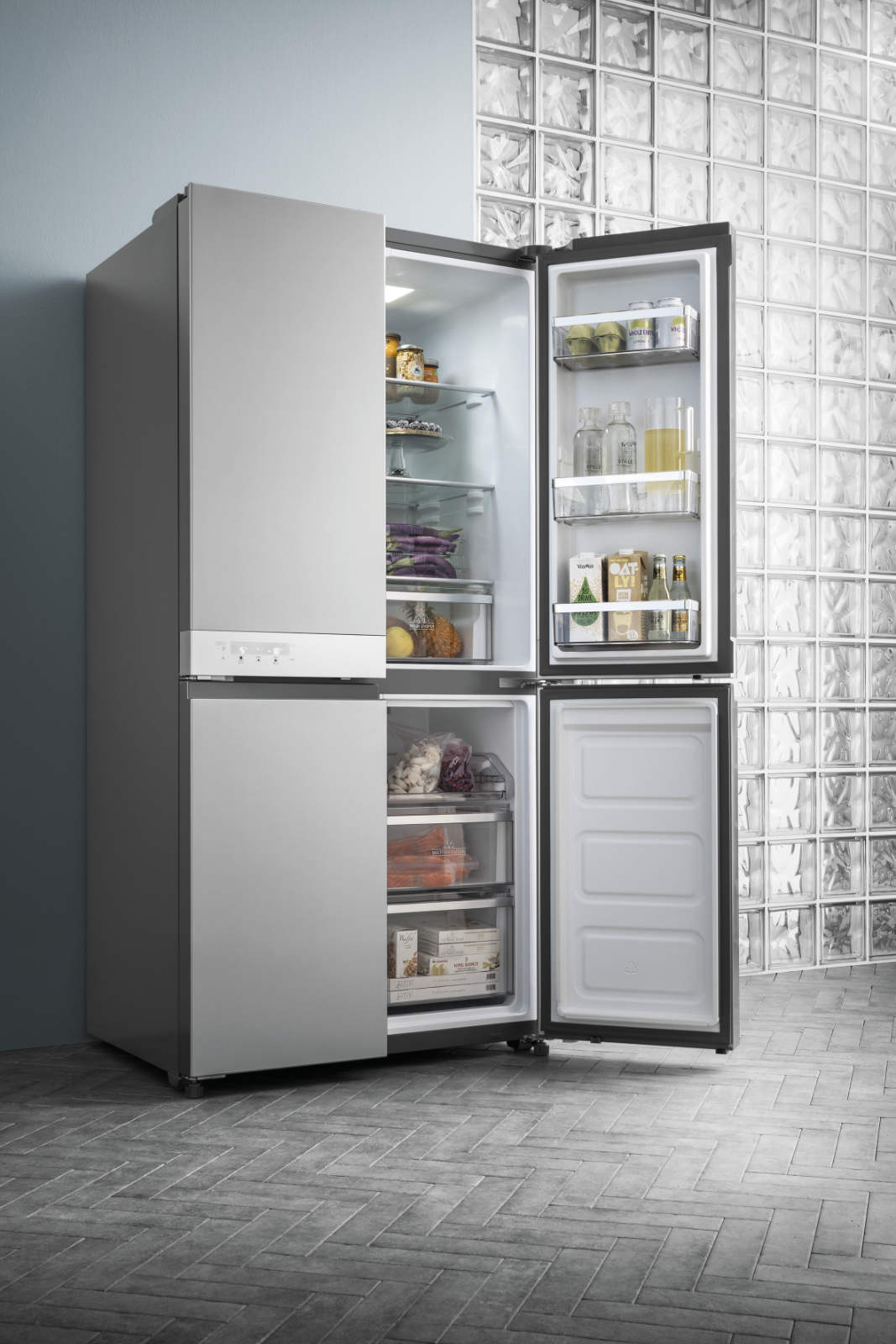 Die viertürige Kühl-Gefrierkombination Active Quattro bringt außergewöhnliches Fassungsvermögen und Vielseitigkeit zusammen. Mit 591 Litern maximalem Nutzinhalt bietet die Kühl- /Gefrierkombination ausreichend Platz für jeden Großeinkauf. Der Clou sind spezielle „Multi-Temperatur” Zonen mit drei verschiedenen Temperaturen für die optimale Aufbewahrung unterschiedlichster Lebensmittel: -7 Grad für schonendes Auftauen, -12 Grad ist ideal für Eiscreme und Desserts und -18 Grad für die traditionelle Aufbewahrung.