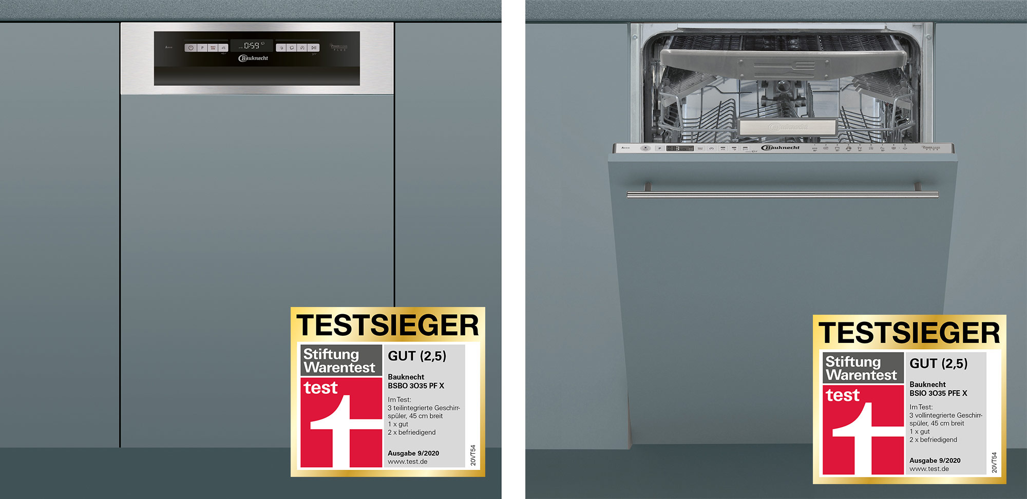 Beide Geräte erhielten als einzige Spülmaschinen mit 45 Zentimetern Breite das Urteil „gut“ (2,5). Insgesamt hat die Stiftung Warentest 19 Geräte mit der Breite 60 Zentimeter und 45 Zentimeter bewertet, davon zwölf vollintegrierte und sieben teilintegrierte. Besonders punkten konnten die Geräte von Bauknecht durch ihre Langlebigkeit: Beide erreichten in der Kategorie „Dauerprüfung“ die Note „sehr gut“ (1,4).